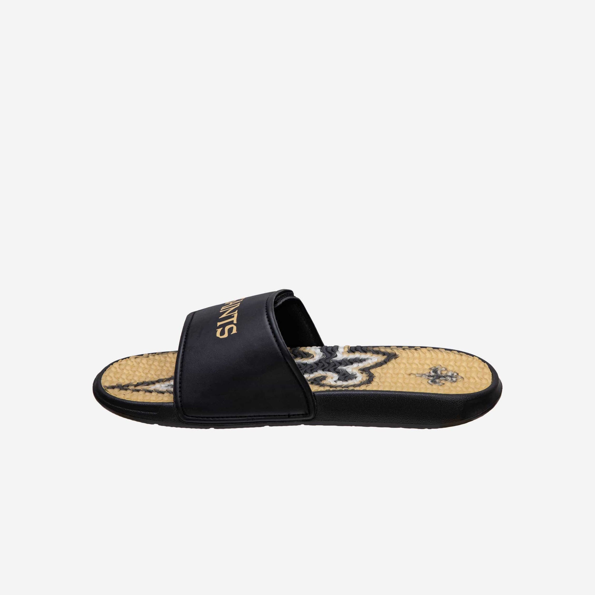 Whether you're at the game, hitting the beach, or enjoying a day at the pool, keeping your feet comfortable is just as important as showing off your fandom. You're in luck, because these New Orleans Saints Men's Wordmark Gel Slides can help you with both. Rep the team with every step.