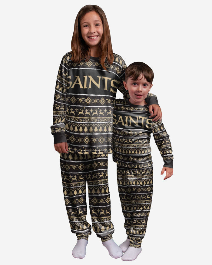 Get some matching family pajamas to turn your good night's sleep into a great night's sleep. You won't want to miss these kids' team pajamas. These youth PJ's are comfortable and show off your team spirit in the form of some sweet youth jammies. Introducing New Orleans Saints Youth Family Holiday Pajamas. Don't forget to take your holiday photo with the family wearing matching Christmas pajamas.
