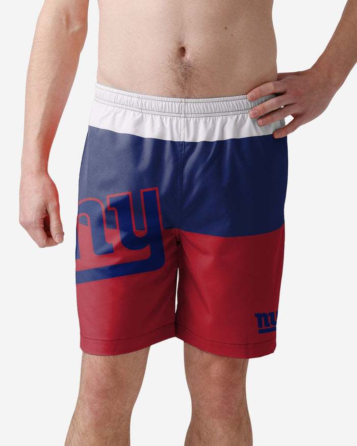 Need a break from the heat of gameday competition? Cool off by going for a dip in these New York Giants 3 Stripe Big Logo Traditional Swimming Trunks.