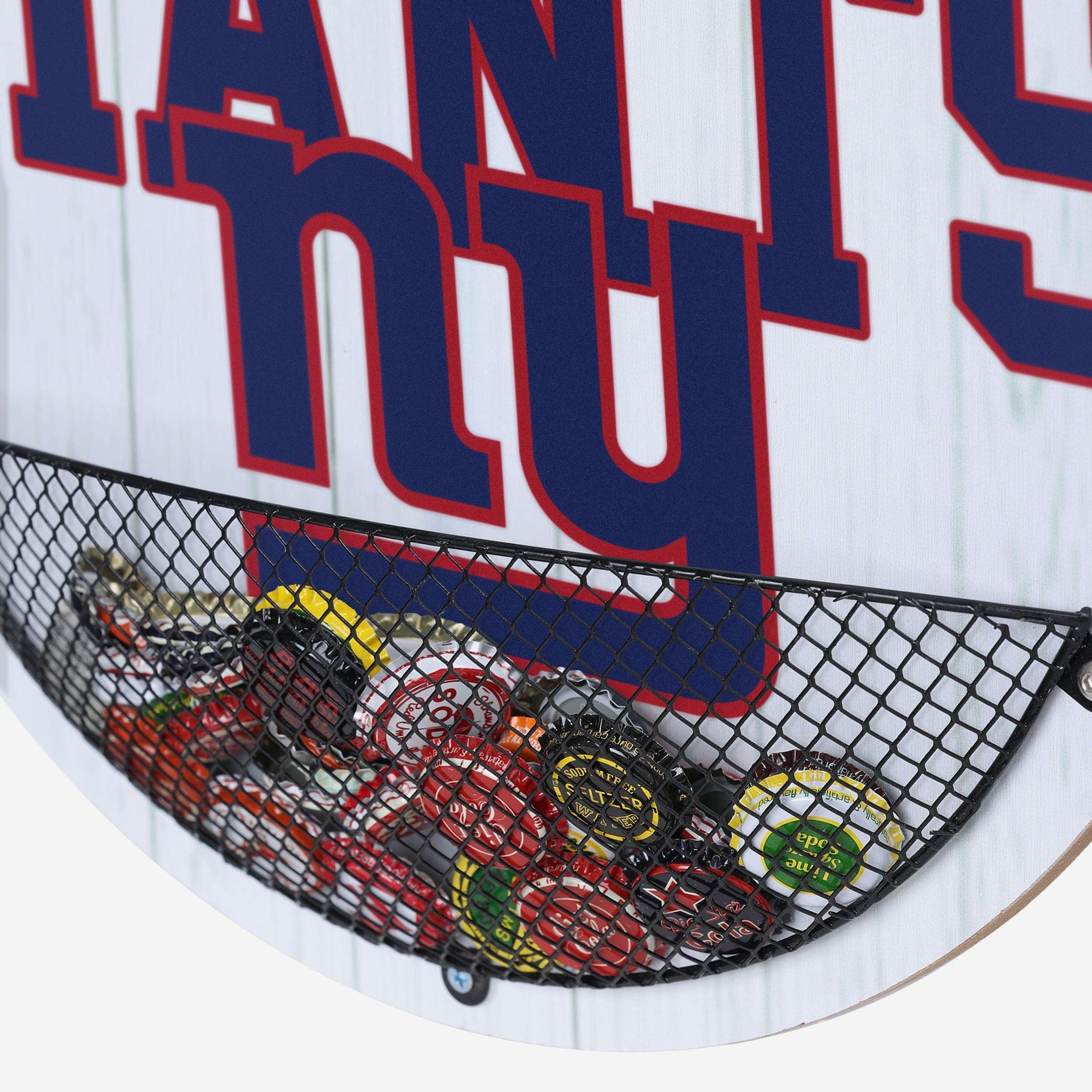 Pop the top and let the cap drop. Cleanup after gameday in the fancave is easy when you've got this New York Giants Bottle Opener Cap Catcher Wall Sign.