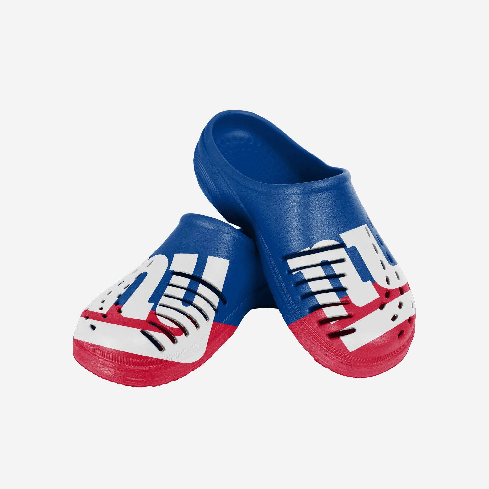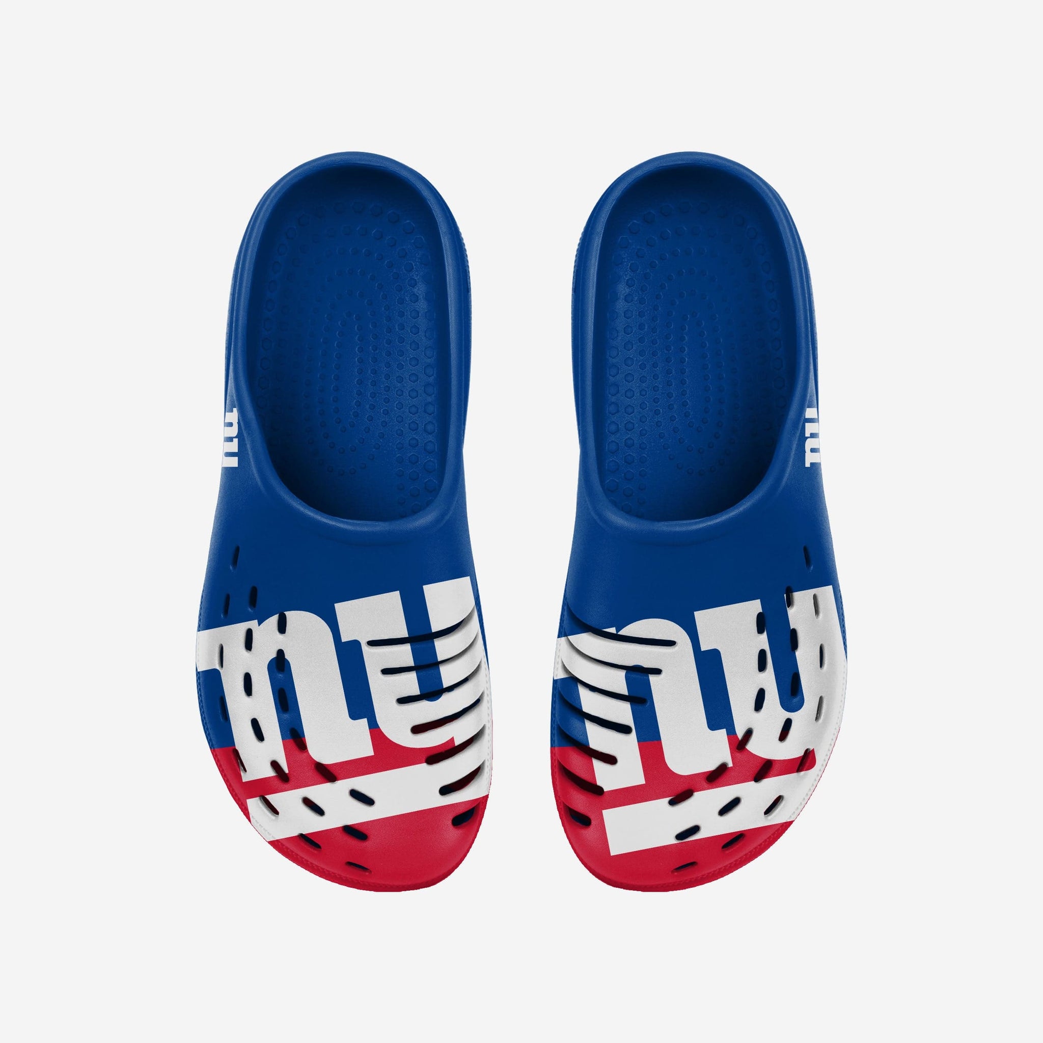 Whether you're walking around the house, in the park, or to your favorite seat in the stadium ready to cheer your team on to victory, do so in style by rocking these New York Giants Colorblock Big Logo Clogs!