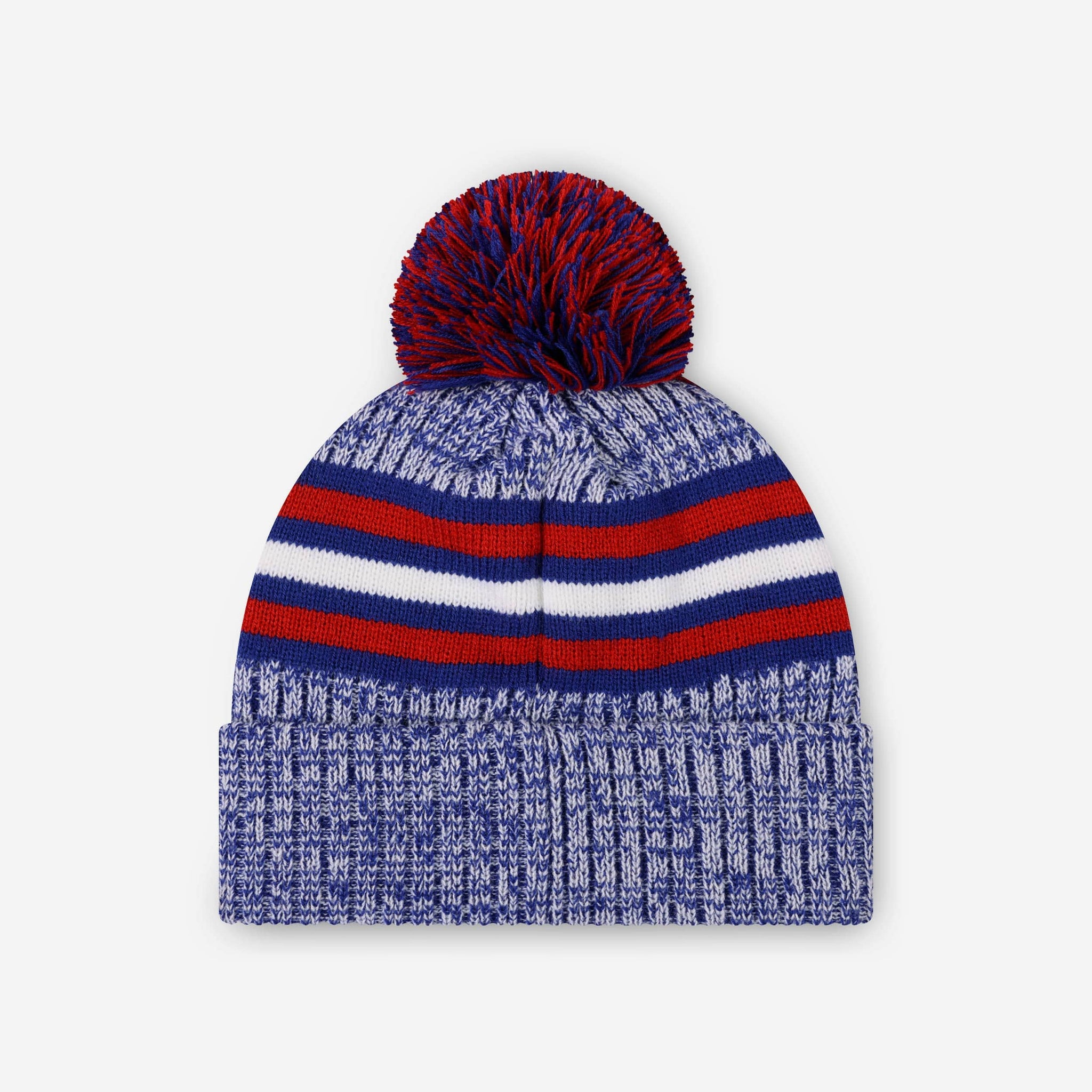 Don’t get left out in the cold. Make the smart play for gameday and beyond with the New York Giants Heather Team Stripe Lined Pom Beanie!