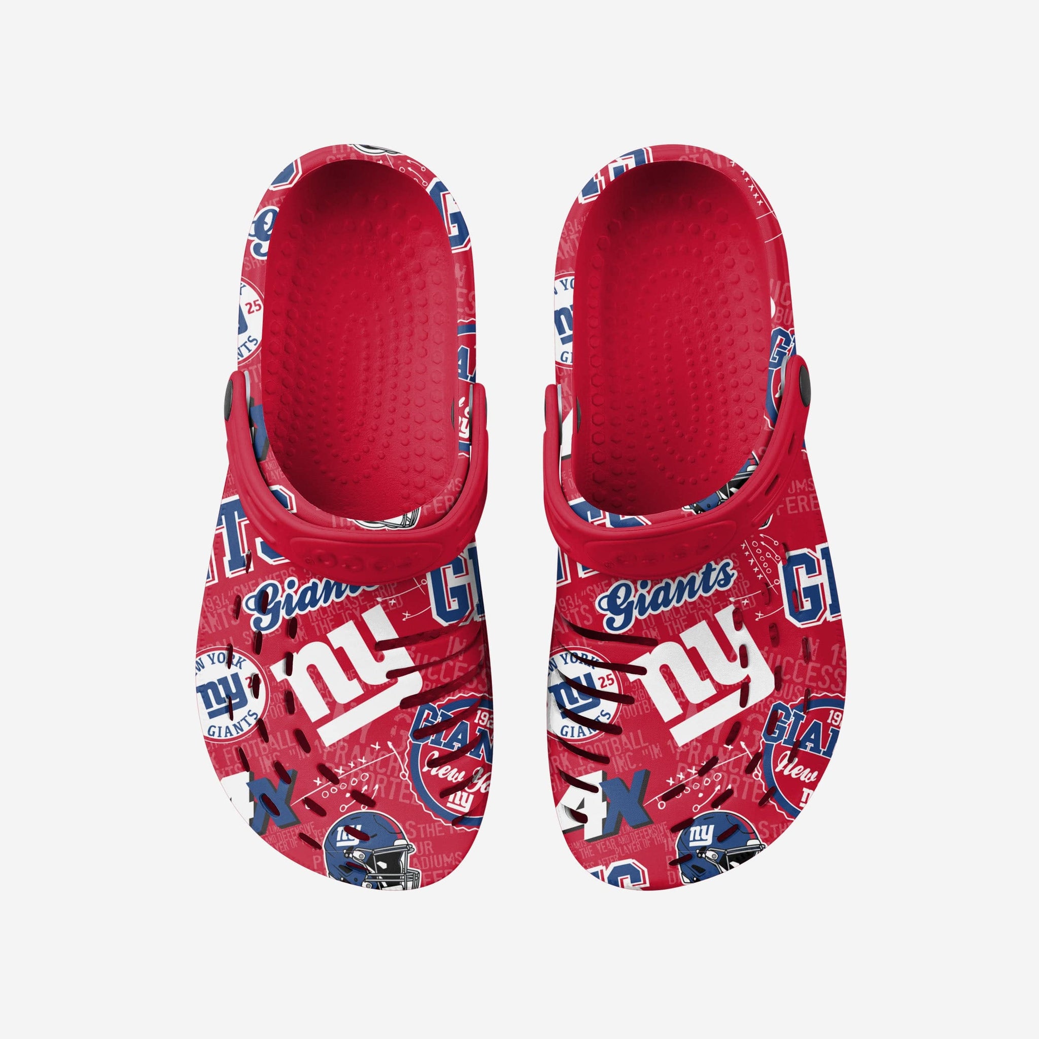 The New York Giants Historic Print Clogs with Straps are here to help you take a step into the time machine and celebrate your franchise's glorious history.
