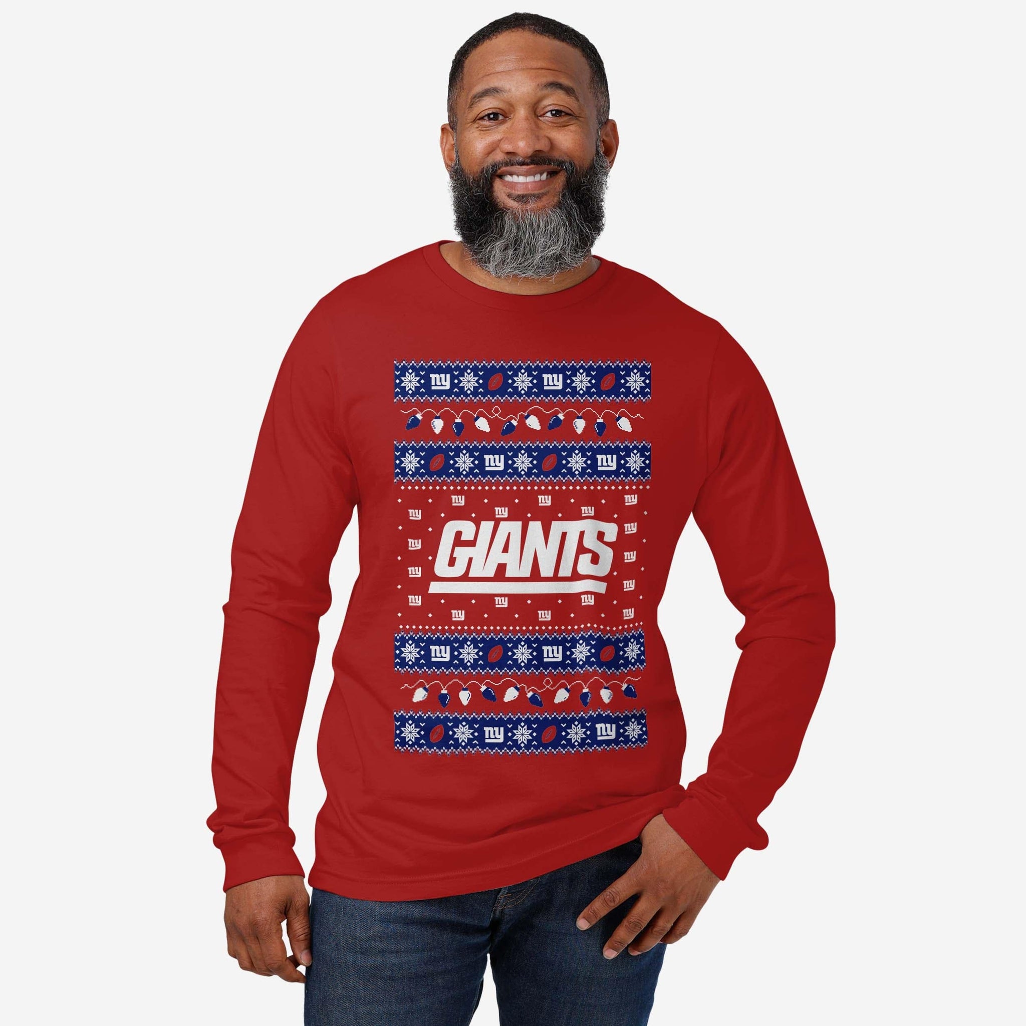 Santa's making a list, and he’s checking it twice! Prove that you’re the nicest fan around with the New York Giants Holiday Lights Sweater Long Sleeve T-Shirt.