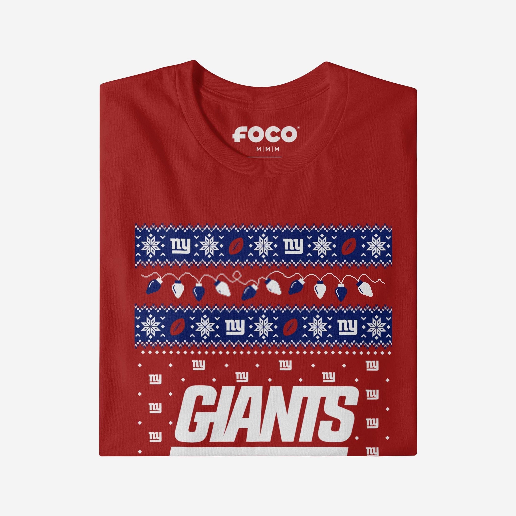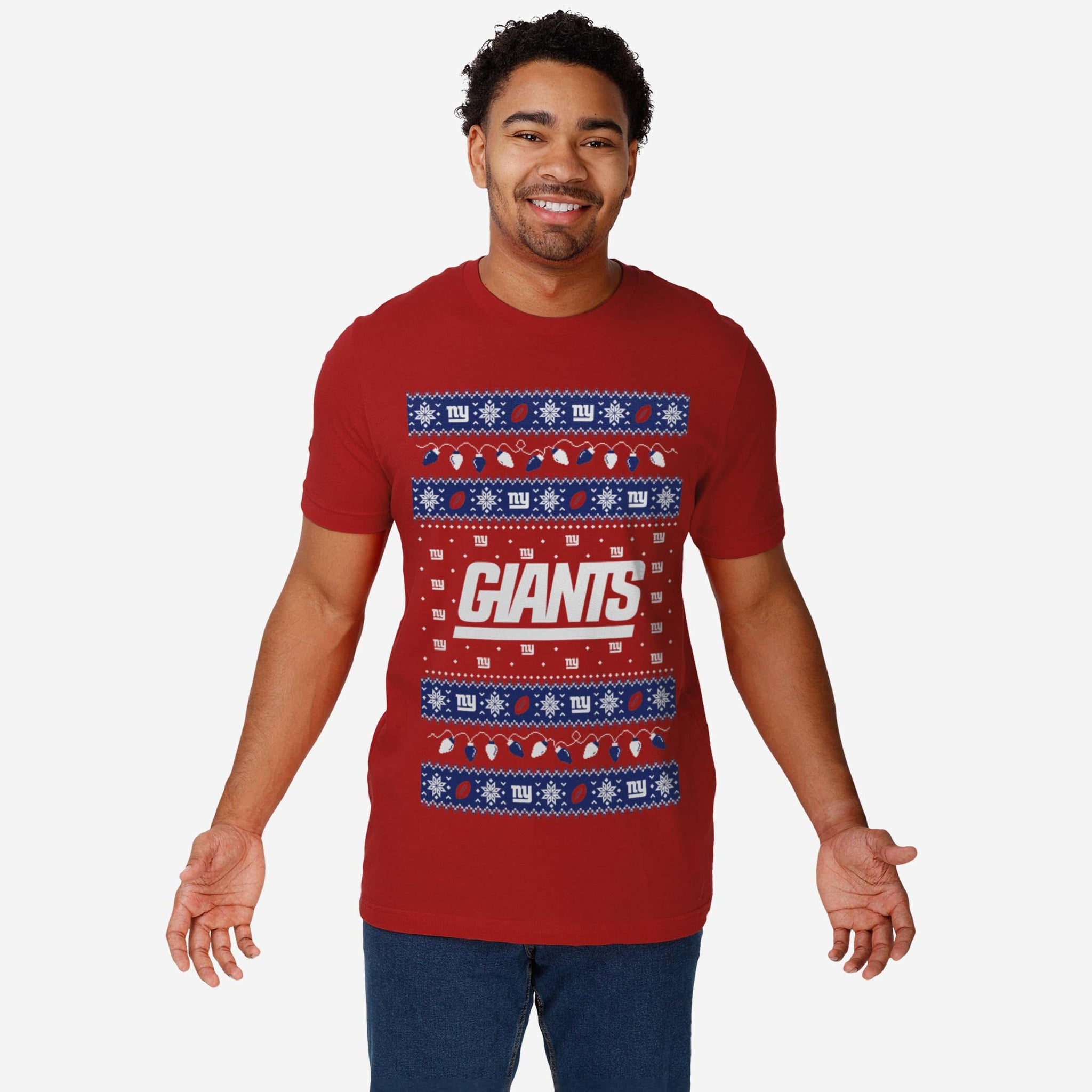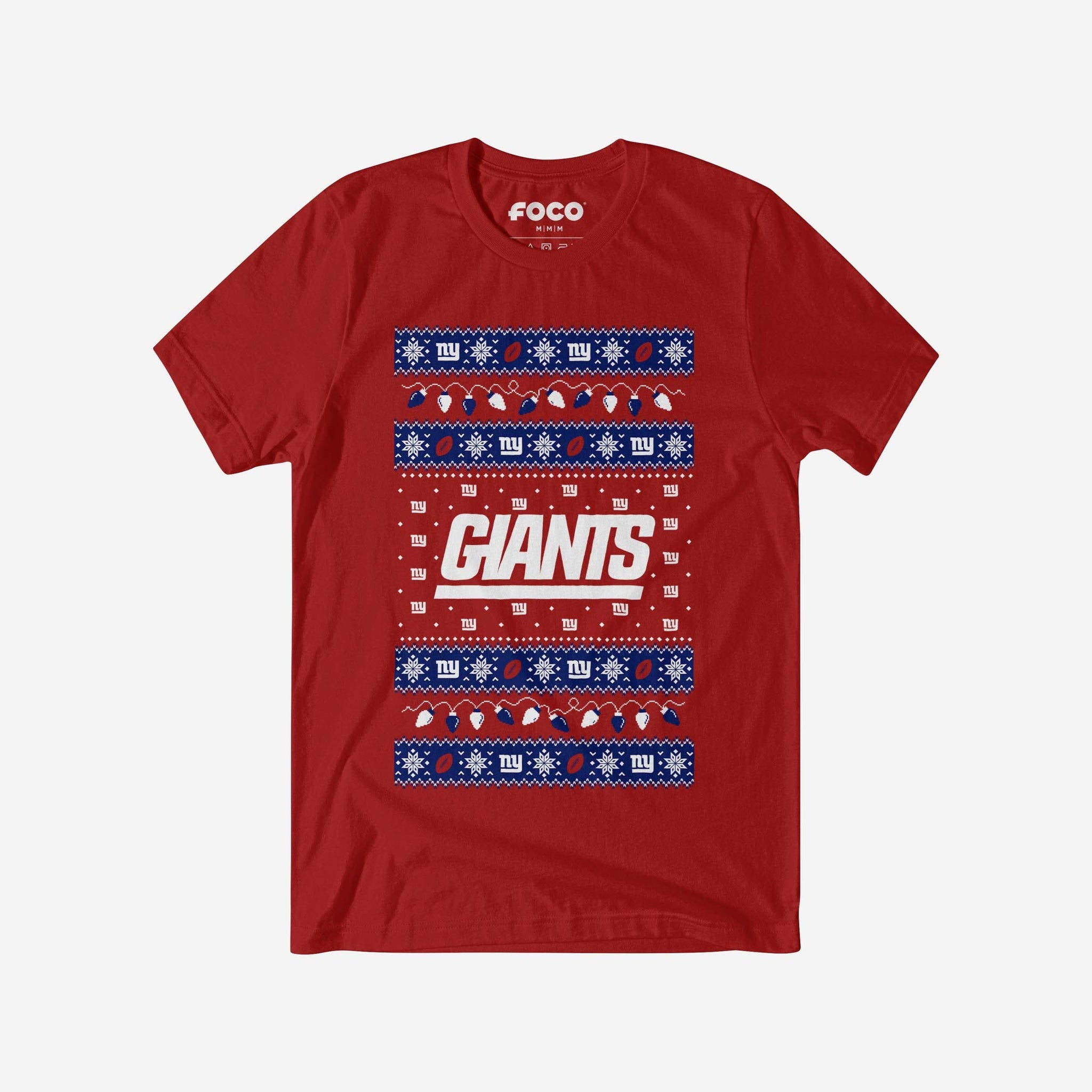 ‘Tis the season for some festive fandom! Make this holiday season merry and bright with the New York Giants Holiday Lights Sweater T-Shirt.