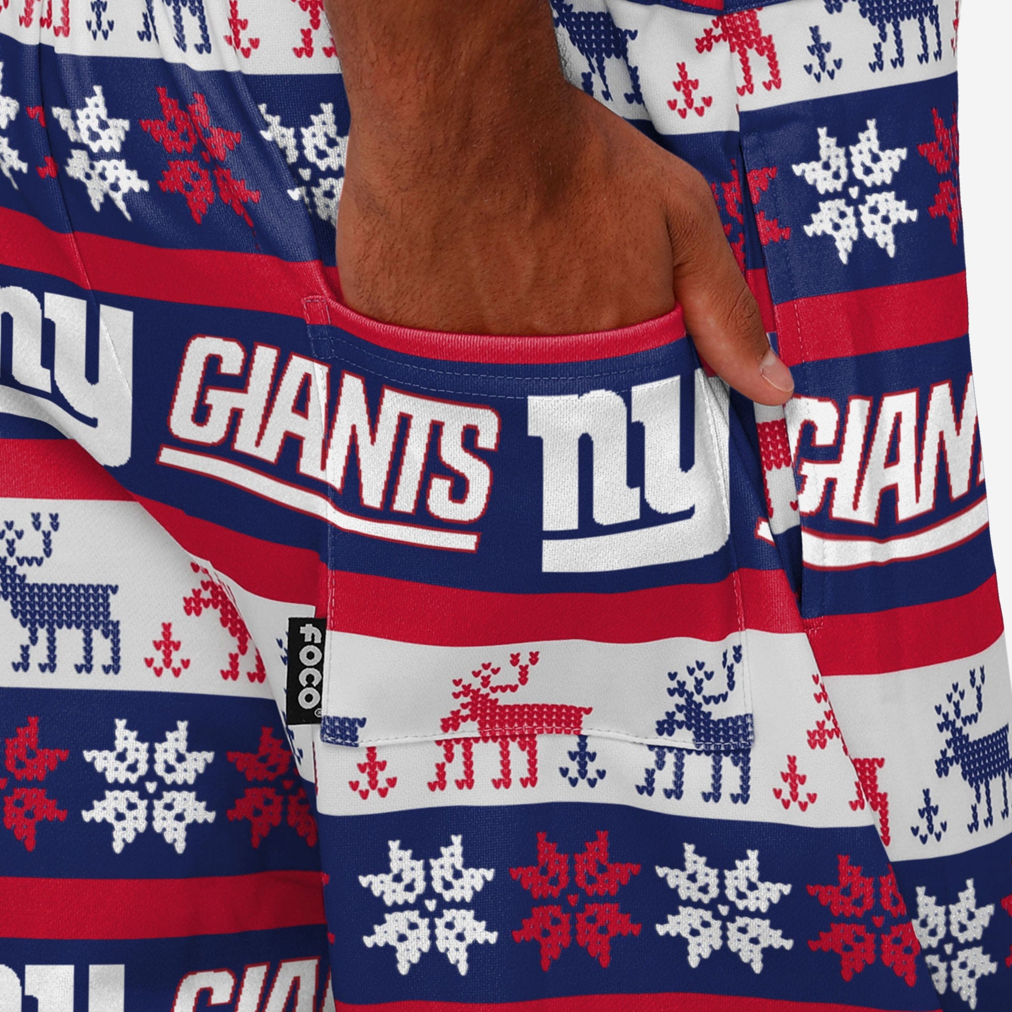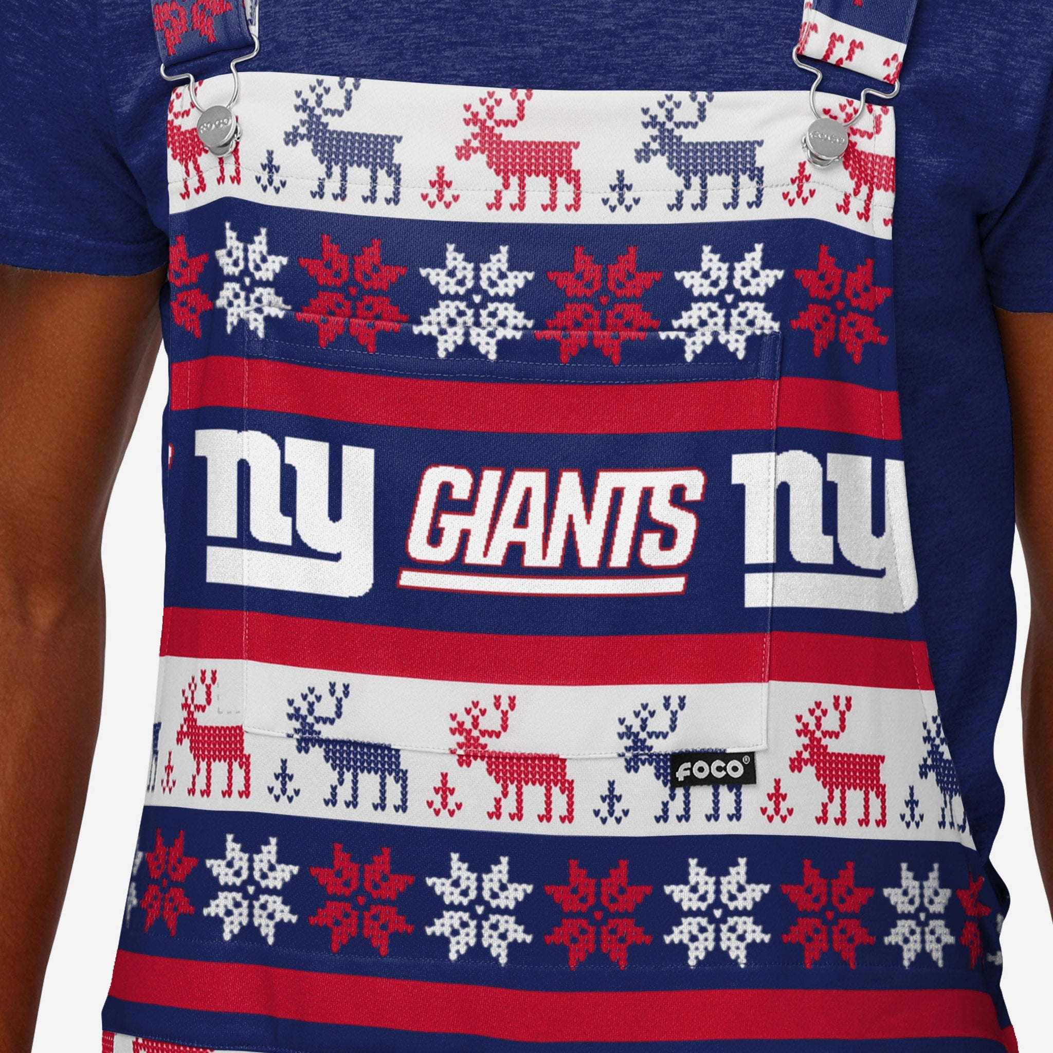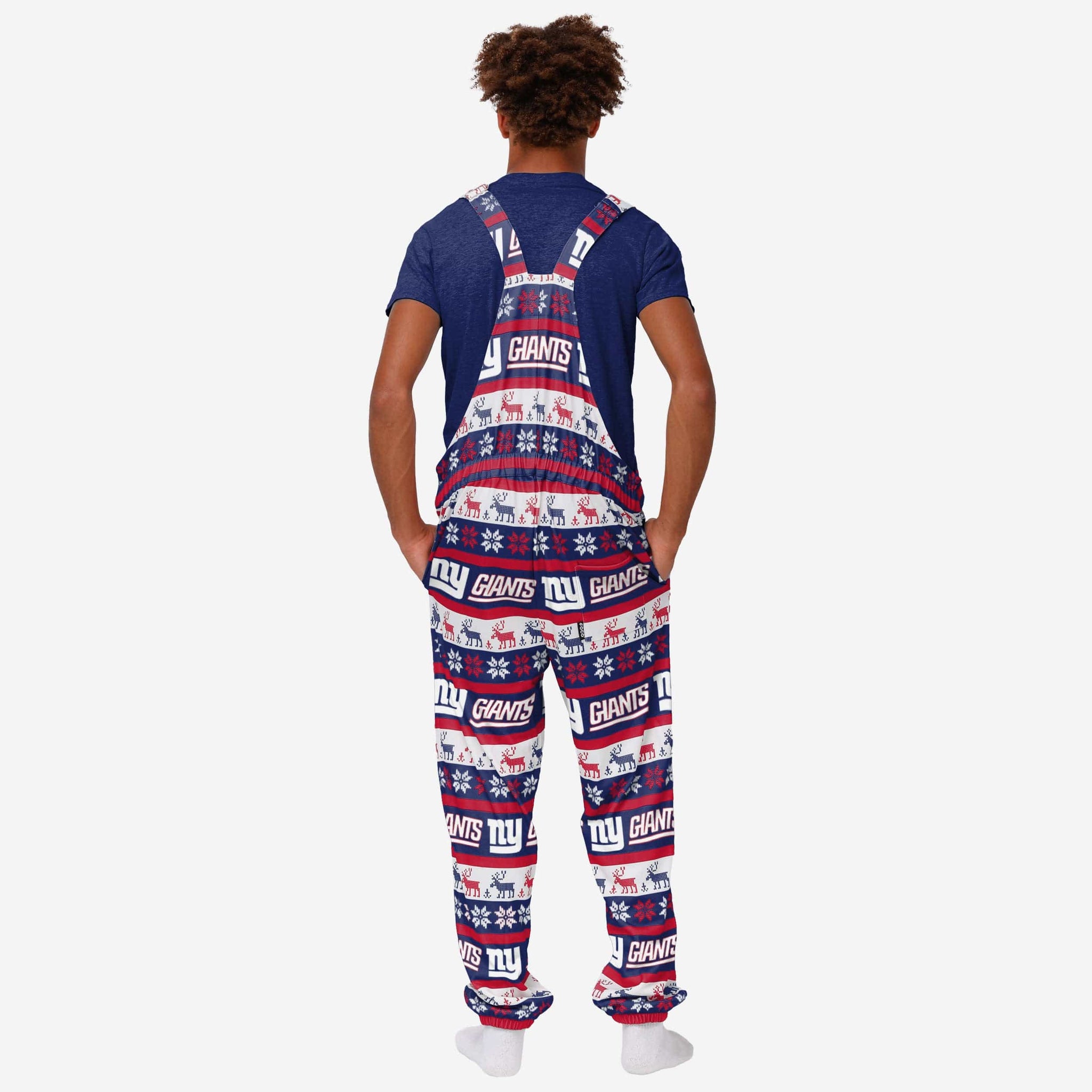 Show your team spirit in these stylish and comfortable New York Giants Men's Ugly Home Gating Bib Overalls. With their all-over team-colored design and bold team logo display, these overalls are the perfect way to show your support for the New York Giants while showing off some beautiful style akin to your favorite ugly sweater that's perfect for the holidays, but will help you stand out year-round.
