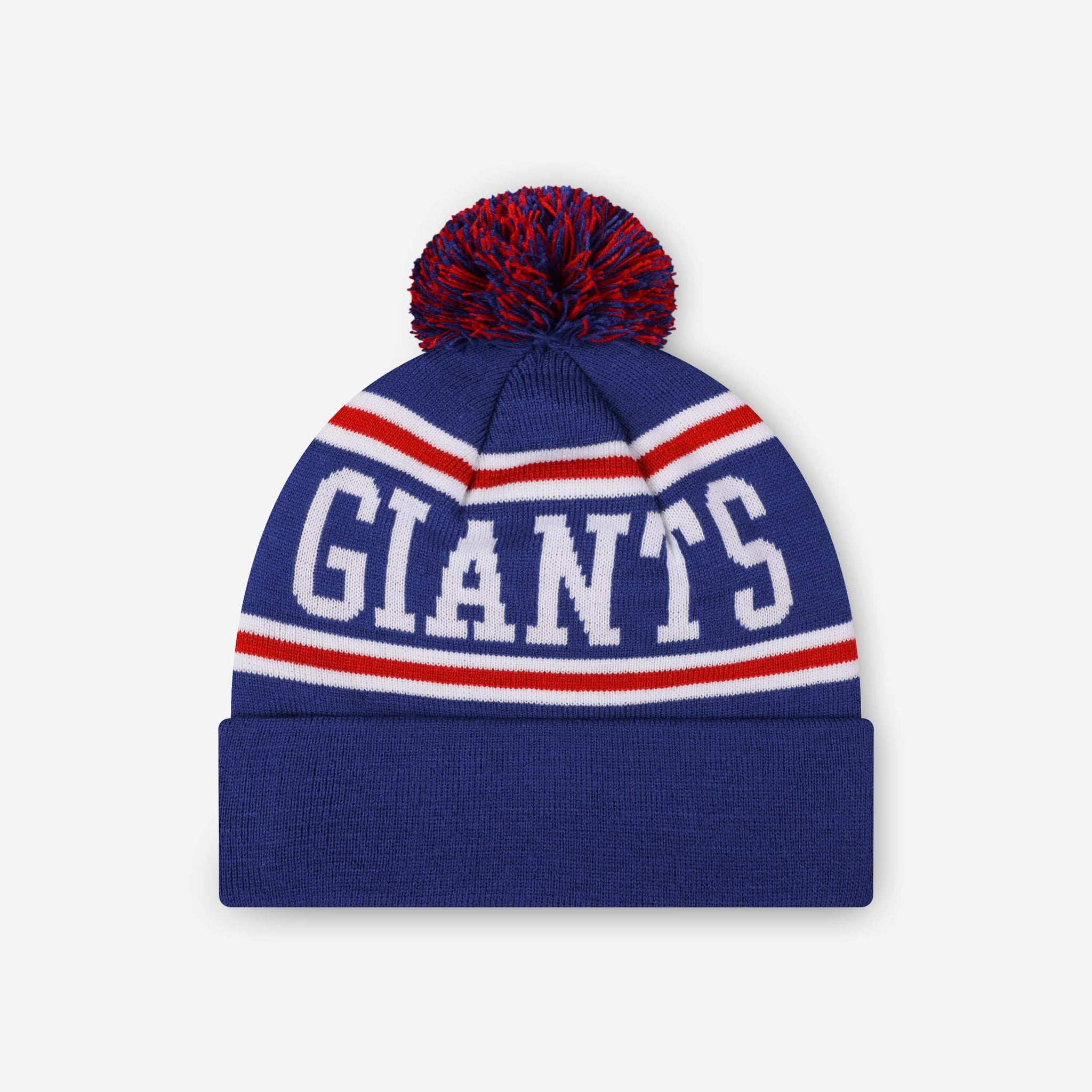 Heads up! This New York Giants Primary Logo Stripe Pom Beanie is so cozy, you might not want to take it off at all this winter.