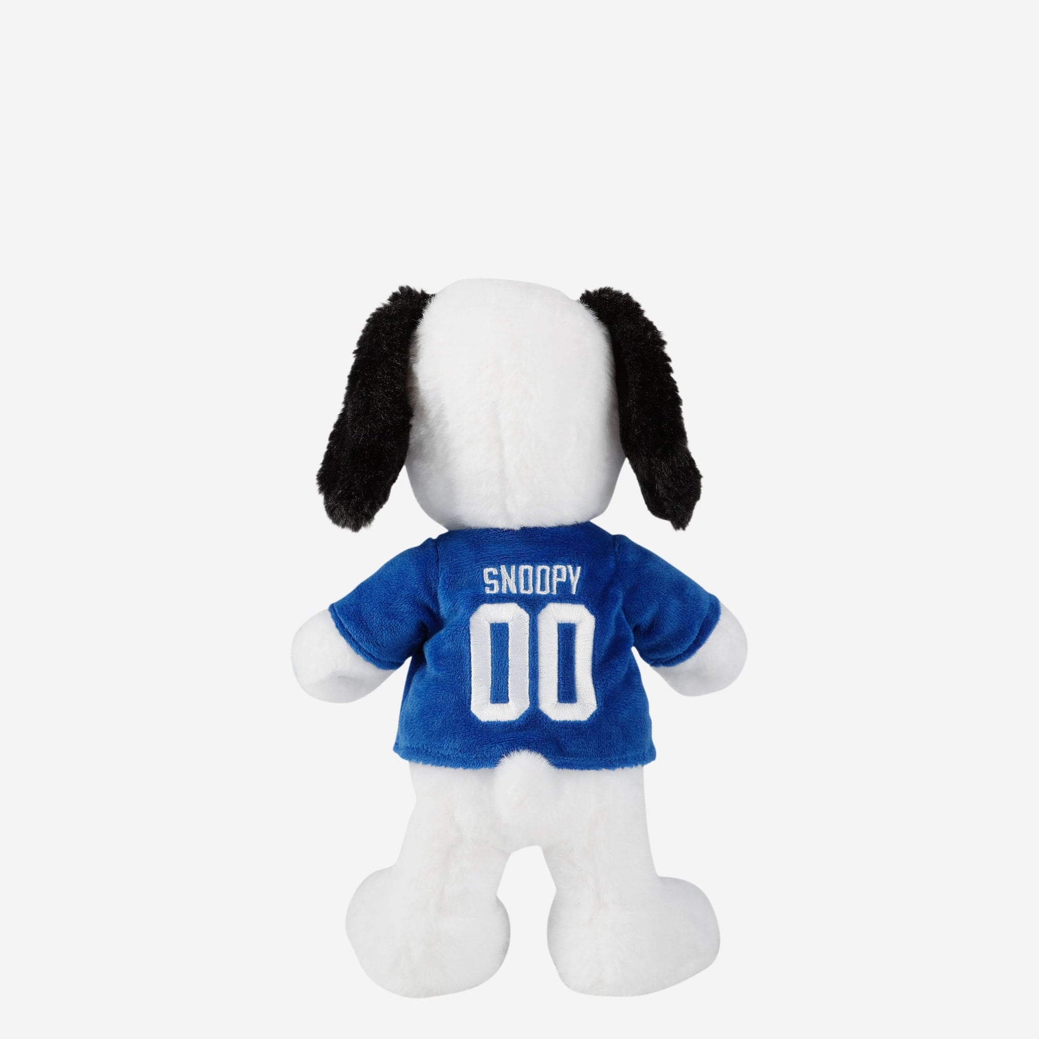 - Plush Snoopy sporting a team-colored jersey with a team logo display
