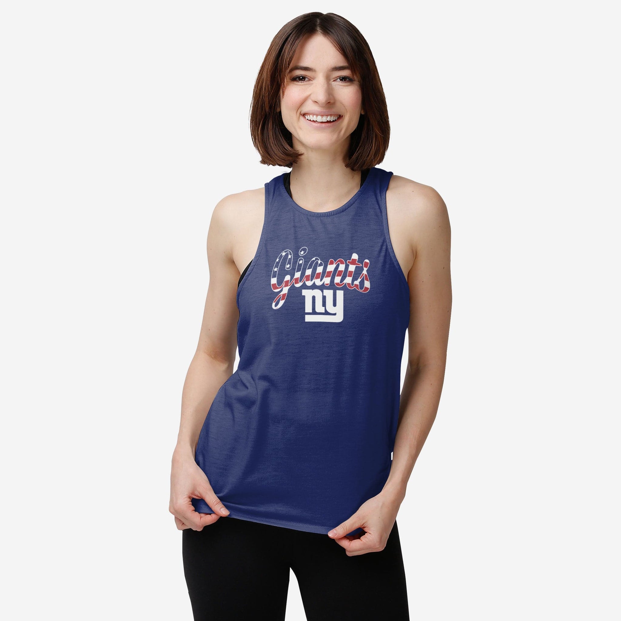 What this New York Giants Women's Americana Tie Back Sleeveless Top lacks in sleeves, it more than makes up for in patriotic team pride!