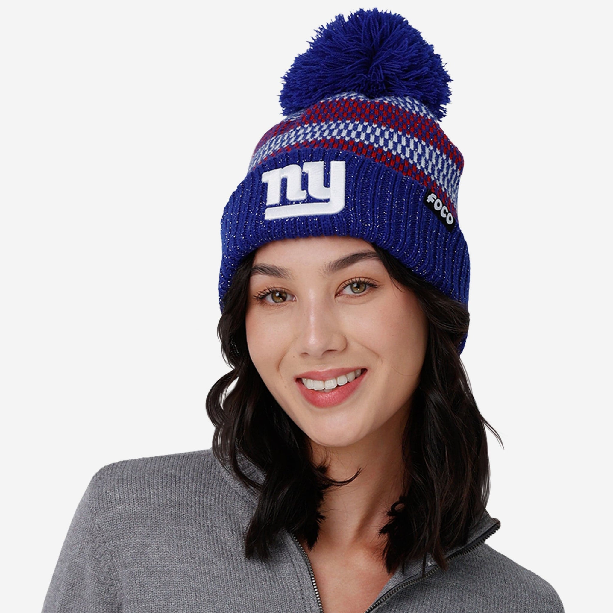 New York Giants Womens Cozy Knit Metallic Thread Pom Beanie FOCO - FOCO.com