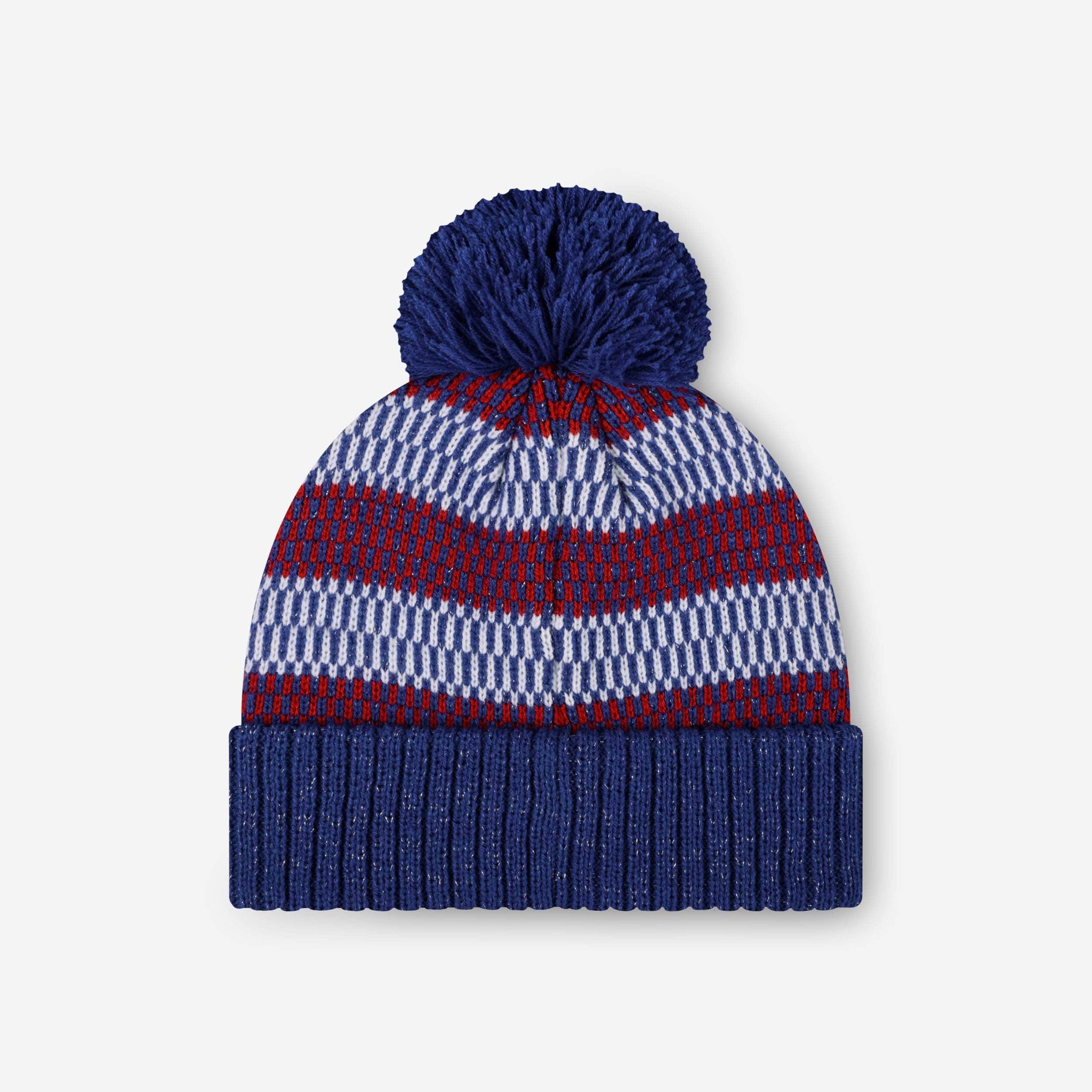 Putting together the ultimate fit for the tailgate and beyond? Make sure to get your head in the game with the New York Giants Women's Cozy Knit Metallic Thread Pom Beanie!