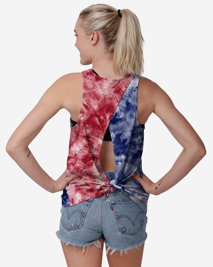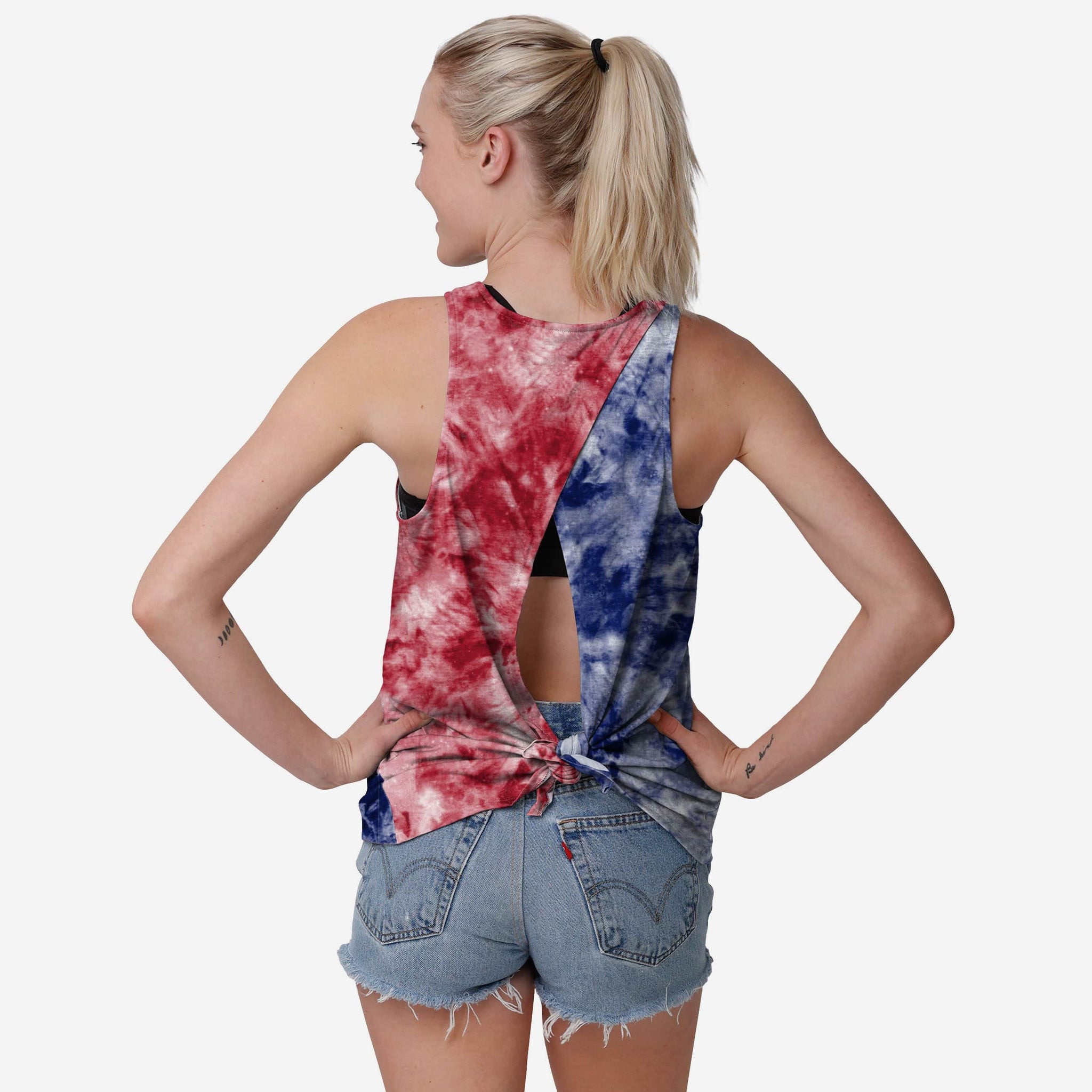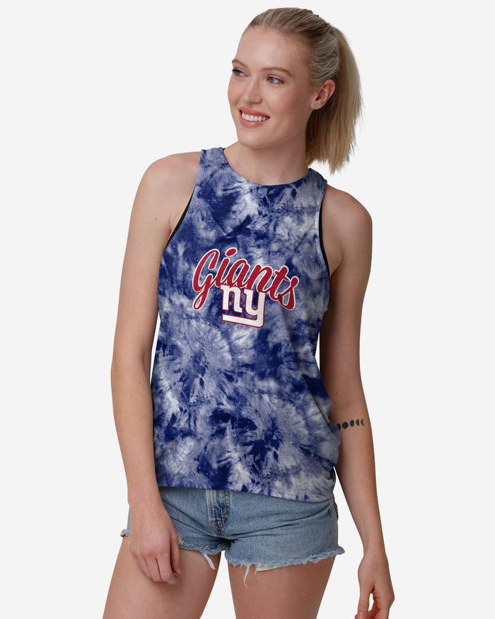 Flip the script and tie some team spirit into your beach day fan fit with this New York Giants Women's Script Wordmark Tie-Dye Tie-Breaker Sleeveless Top.