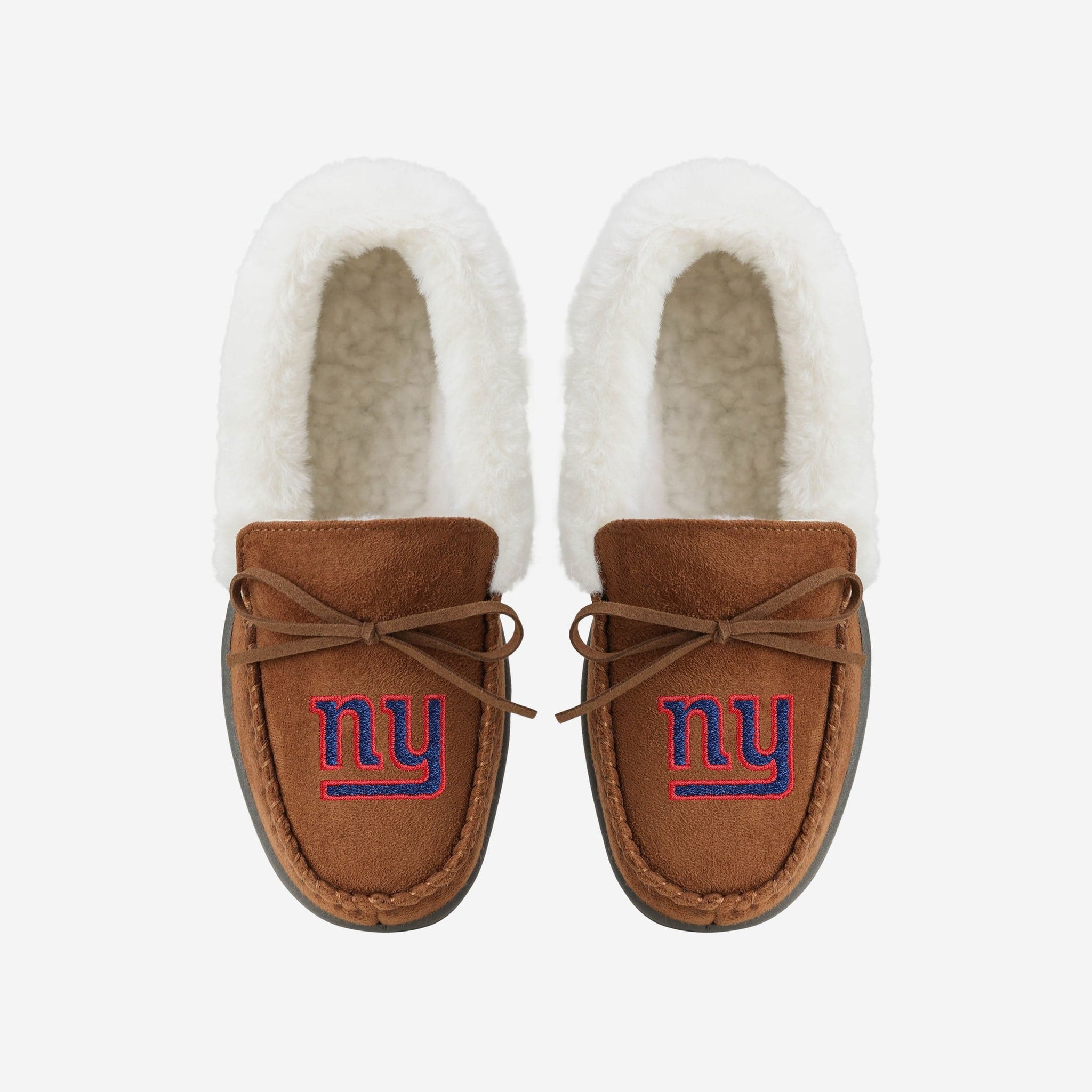 When you rocc these moccs, you can be an MVP on the couch watching TV! Introducing the New York Giants Women's Tan Moccasin Slippers!