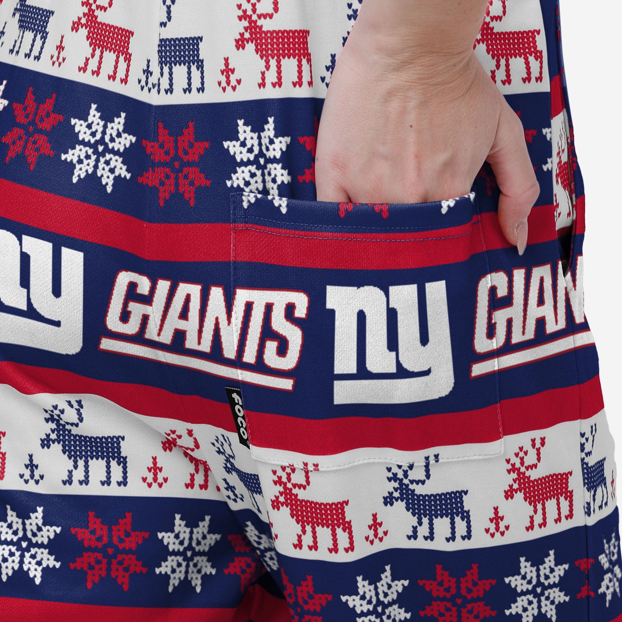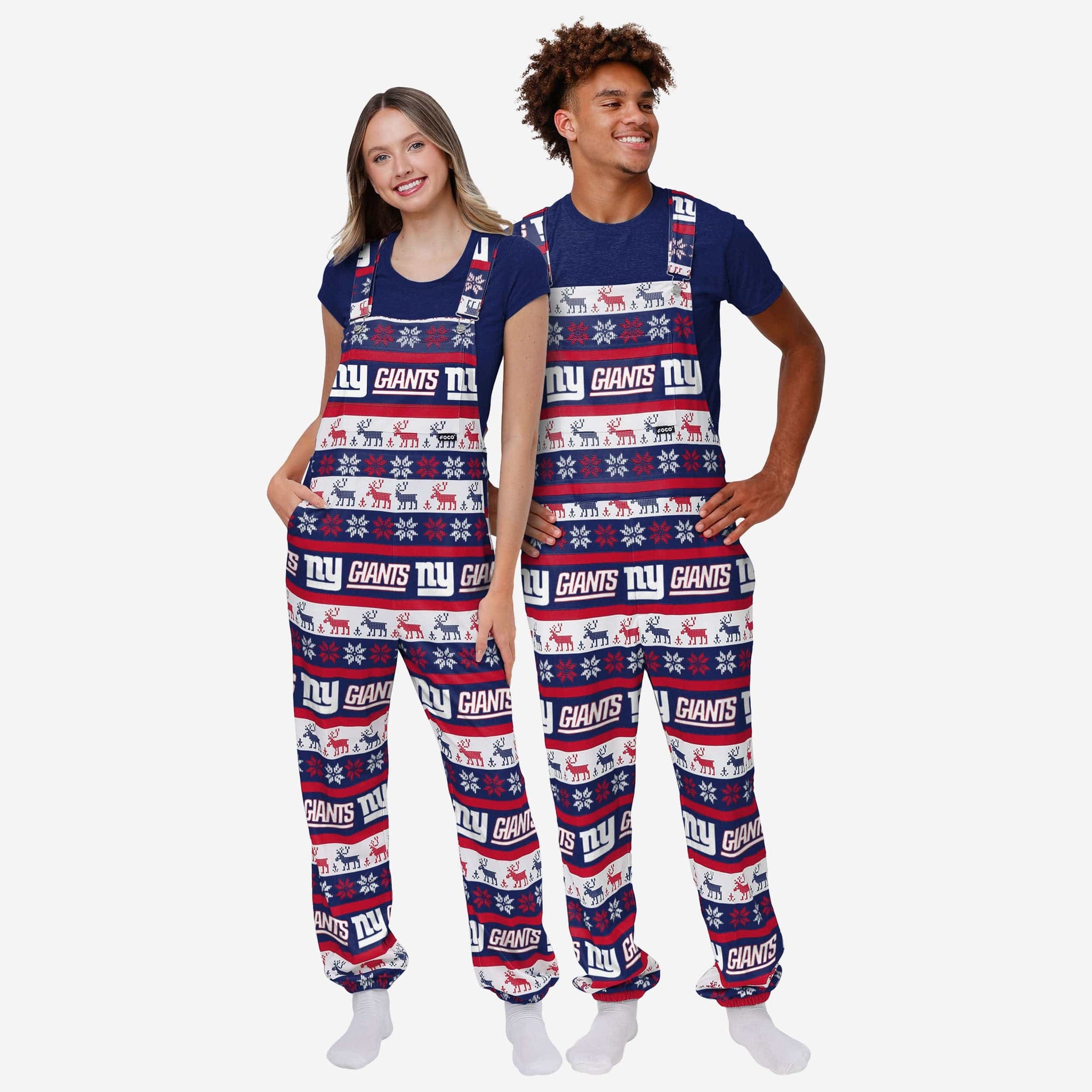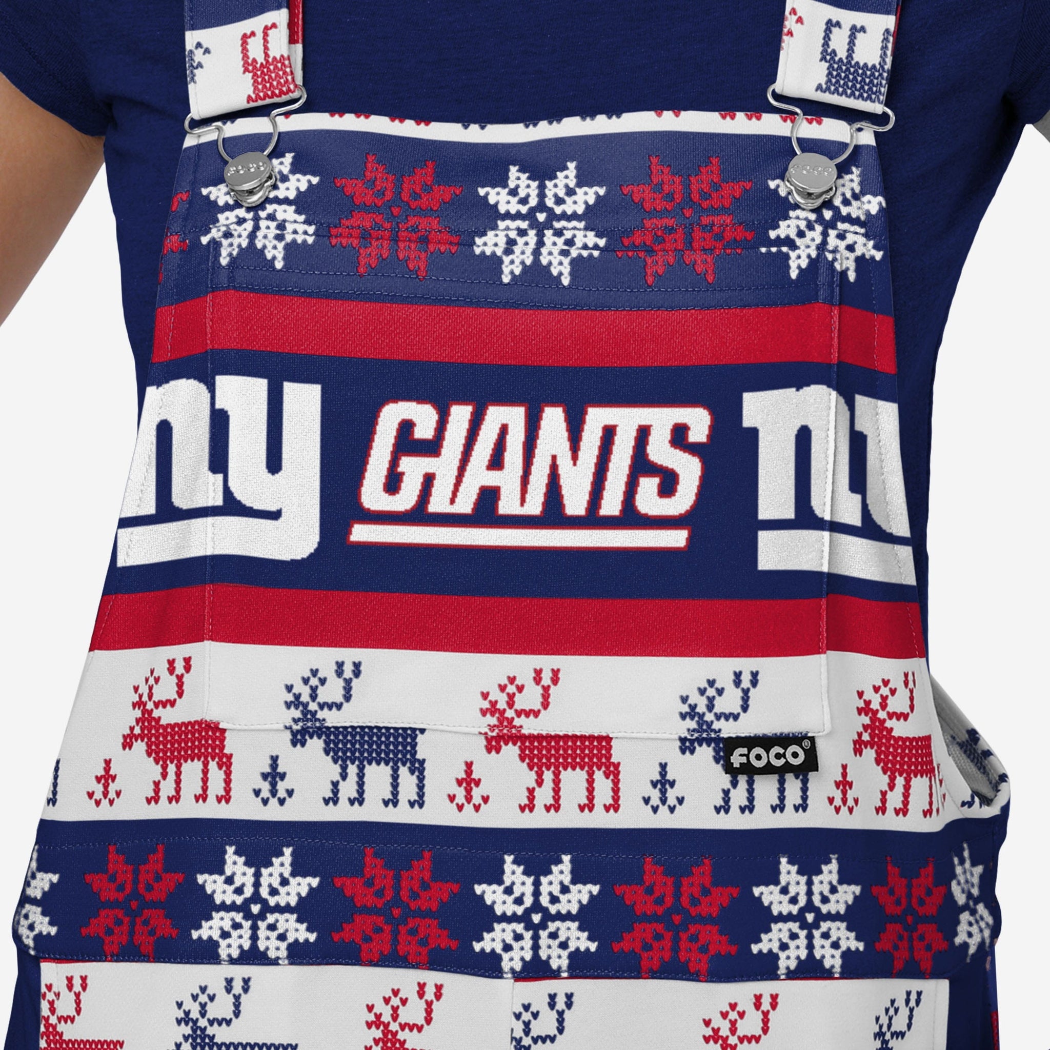 Show your team spirit in these stylish and comfortable New York Giants Women's Ugly Home Gating Bib Overalls. With their all-over team-colored design and bold team logo display, these overalls are the perfect way to show your support for the New York Giants while showing off some beautiful style akin to your favorite ugly sweater that's perfect for the holidays, but will help you stand out year-round.