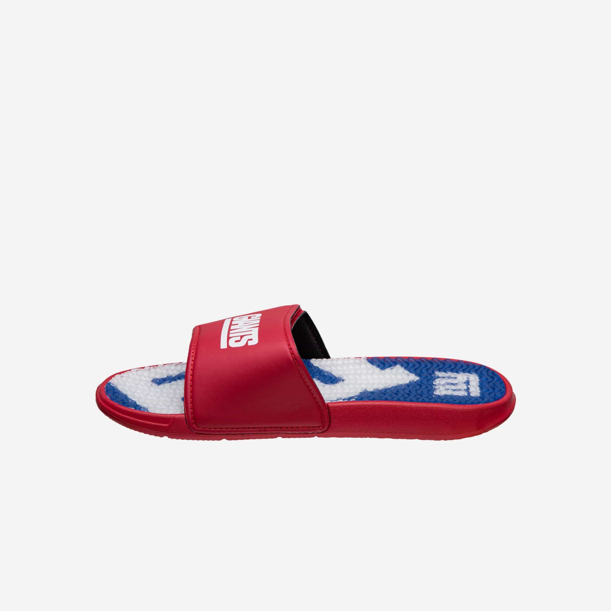 Whether you're at the game, hitting the beach, or enjoying a day at the pool, keeping your feet comfortable is just as important as showing off your fandom. You're in luck, because these New York Giants Men's Wordmark Gel Slides can help you with both. Rep the team with every step.