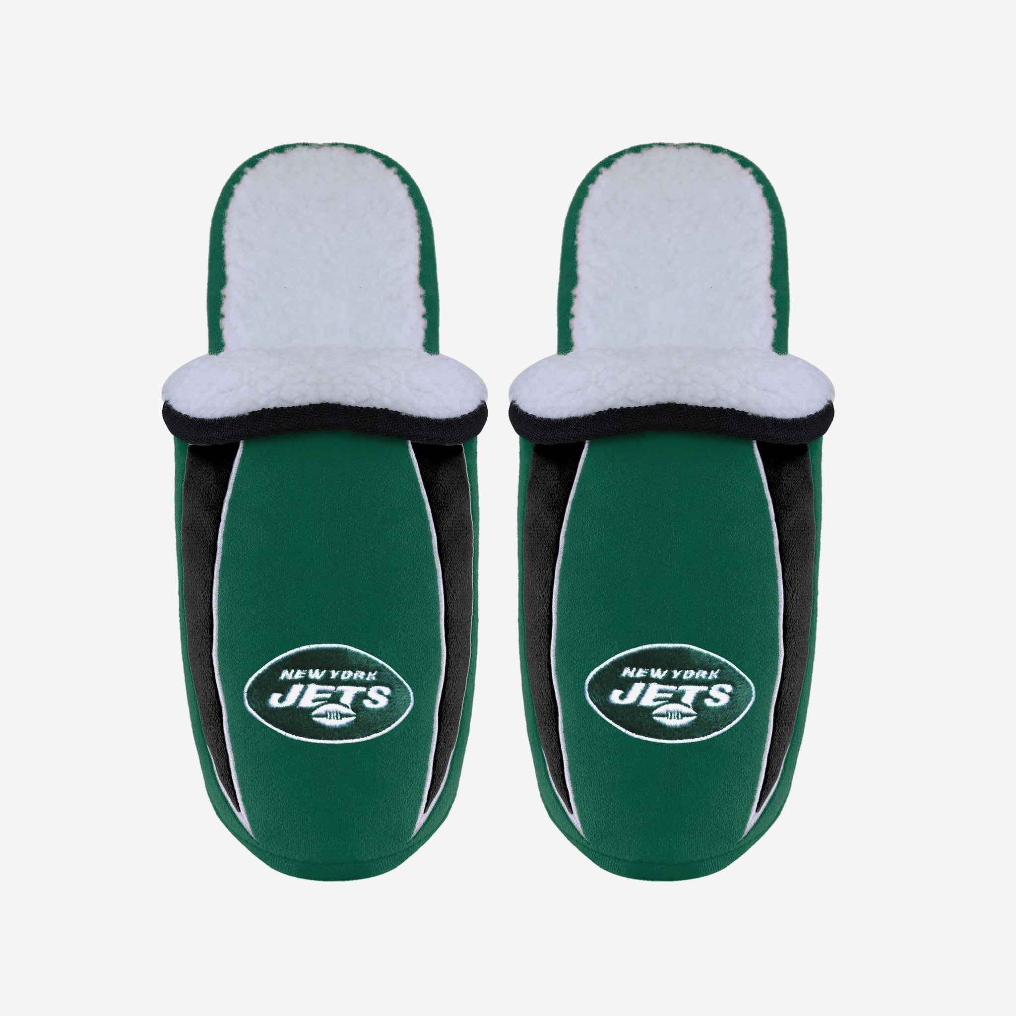 Kicking back, putting your feet up and watching the big game on the big screen in the fancave is great. You know what's even greater? Doing all that while wearing these New York Jets Men's Sherpa Slide Slippers. Step into some serious fan comfort.