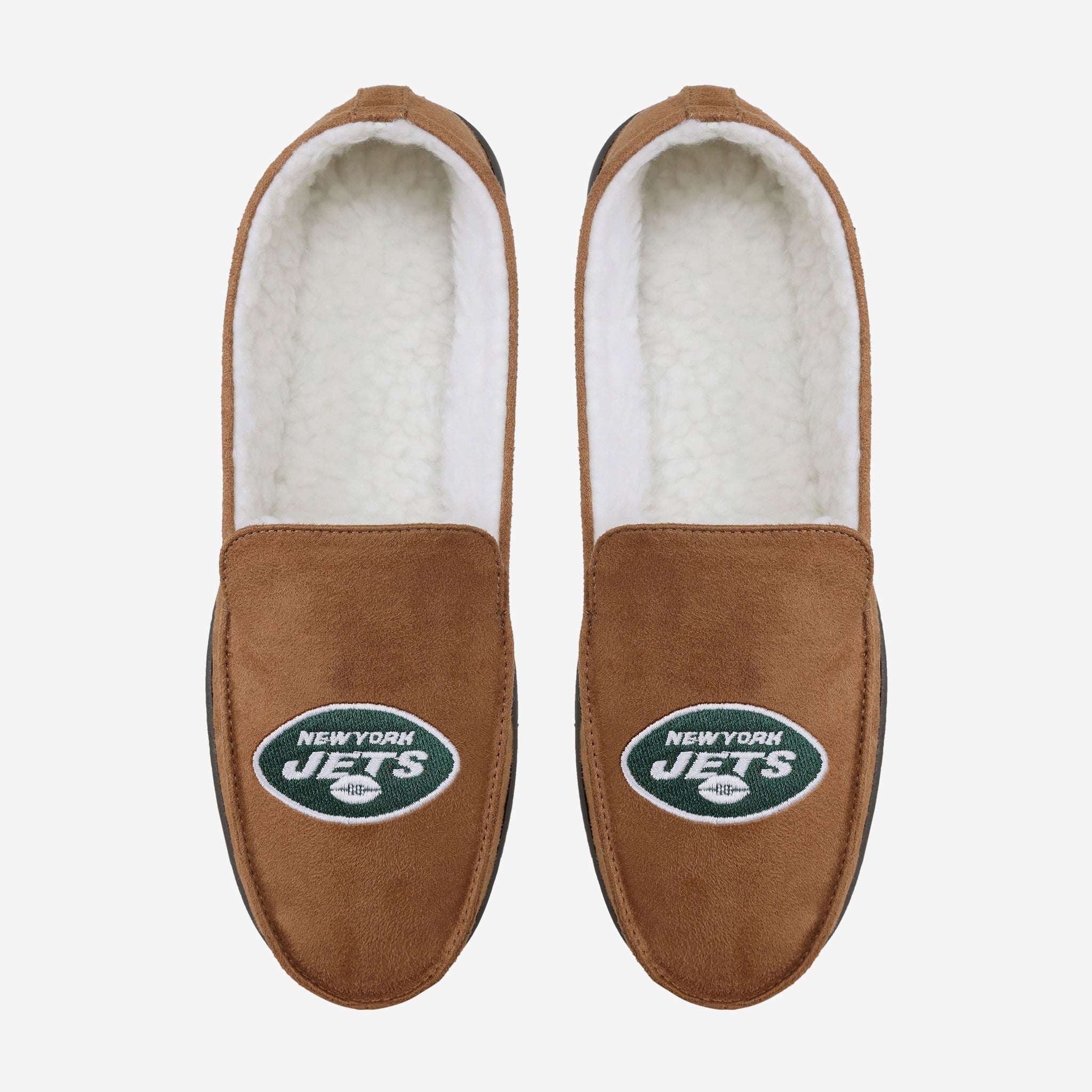 We all enjoy the occasional midnight snack. There's no shame in housing a pint of ice cream at 2:00am. The only thing that would be embarrassing about it is if you did it without the style and comfort of walking to the kitchen in these New York Jets Beige Moccasins.