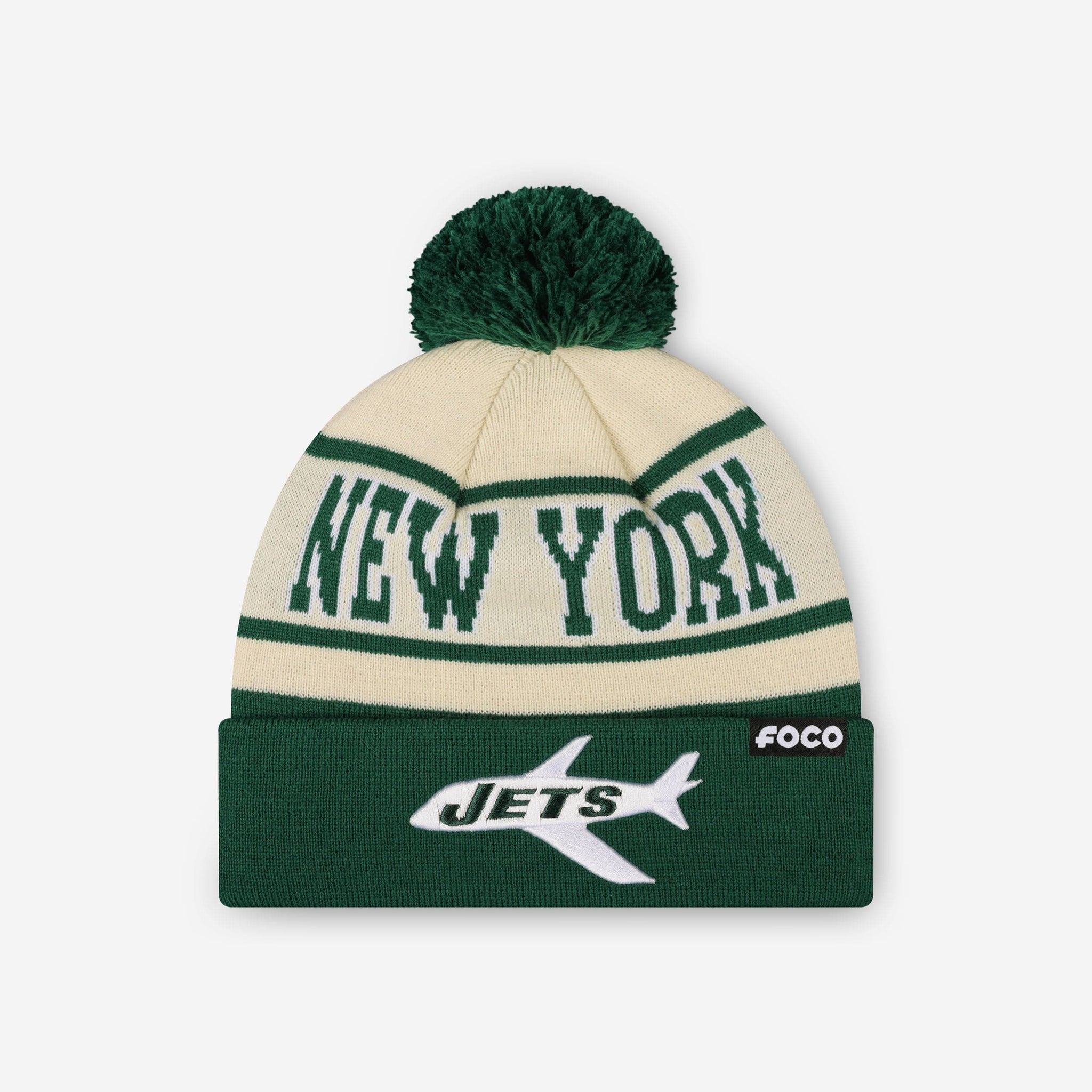 New York Jets Heritage Stripe Retro Logo Pom Beanie FOCO - FOCO.com
