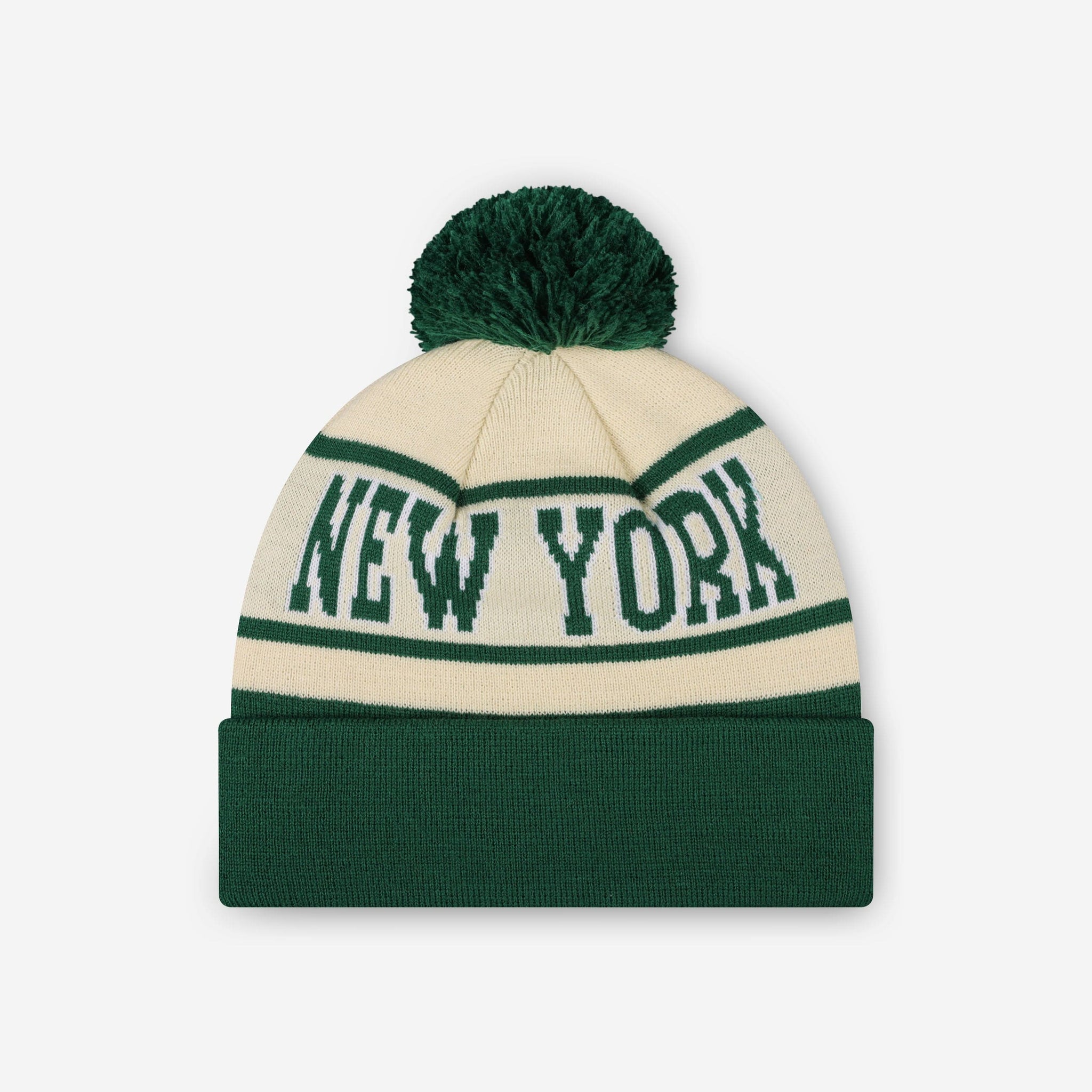 New York Jets Heritage Stripe Retro Logo Pom Beanie