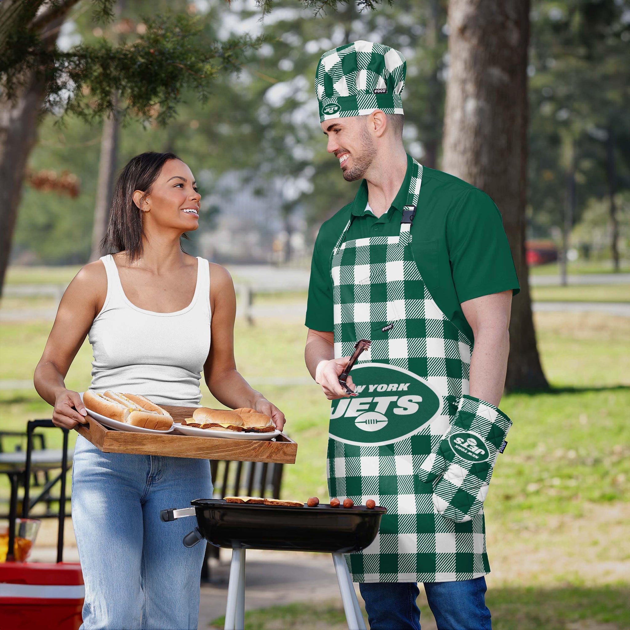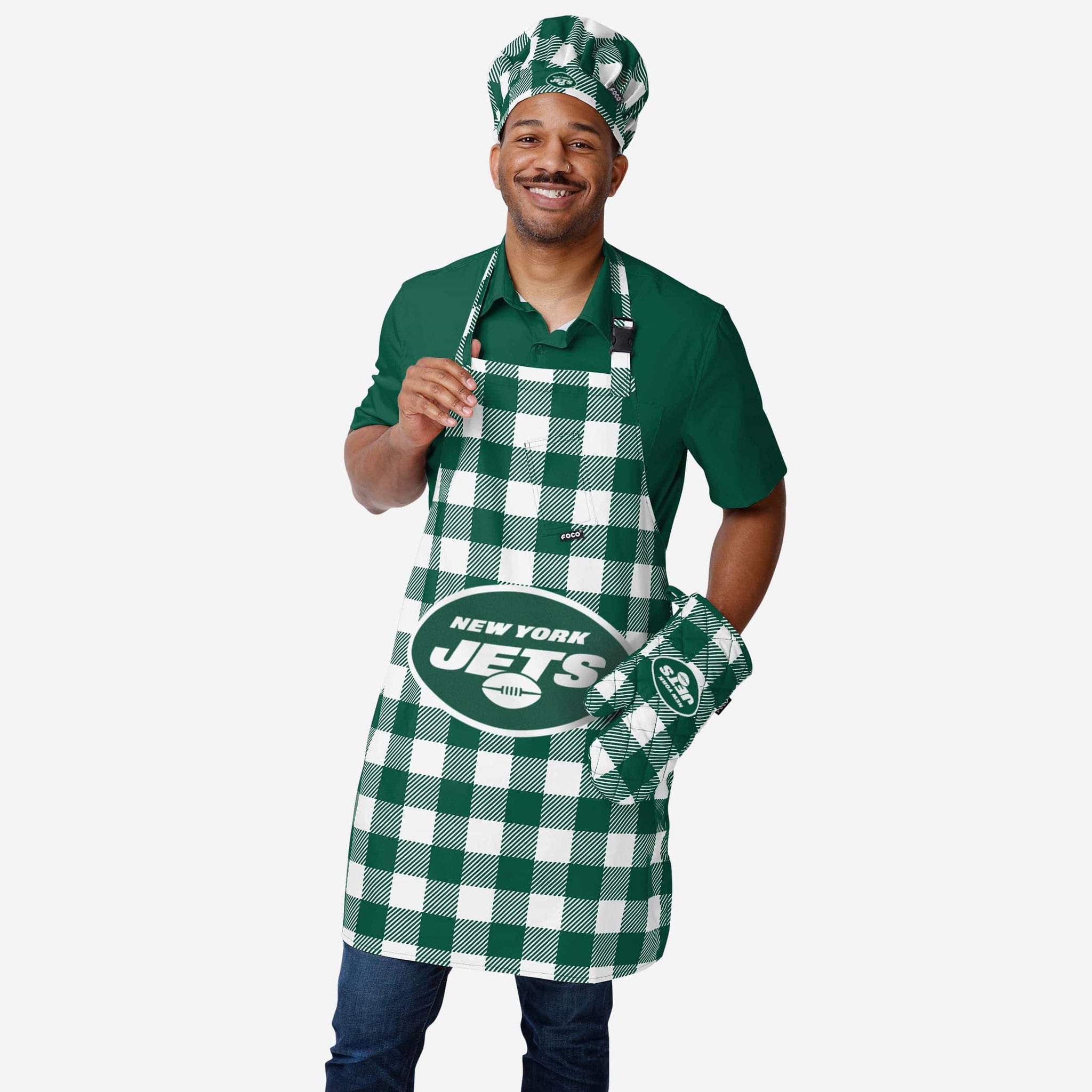 Get ready to serve up the best food in the greatest fan fit. From the kitchen, to the table, to game day, do it all in style with the New York Jets Plaid Chef Set.