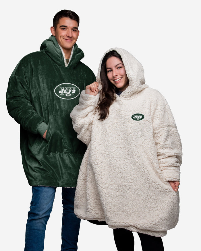 Choosing between showing off your team spirit, looking good, and enjoying some elite relaxation is a tough decision. Borderline impossible. Good news. You don't have to choose. Because you can enjoy that triple threat of fan awesome when you rock this New York Jets Reversible Big Logo Hoodeez.
