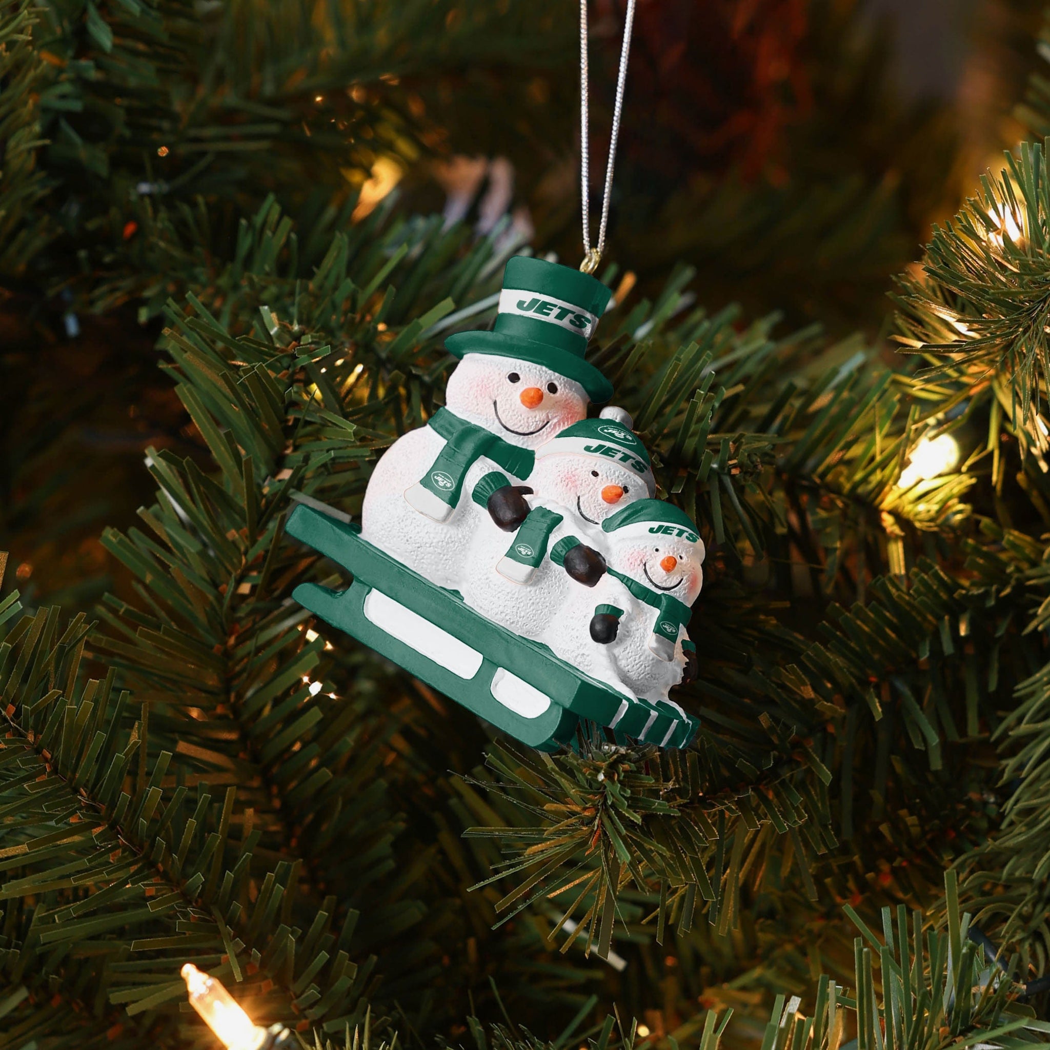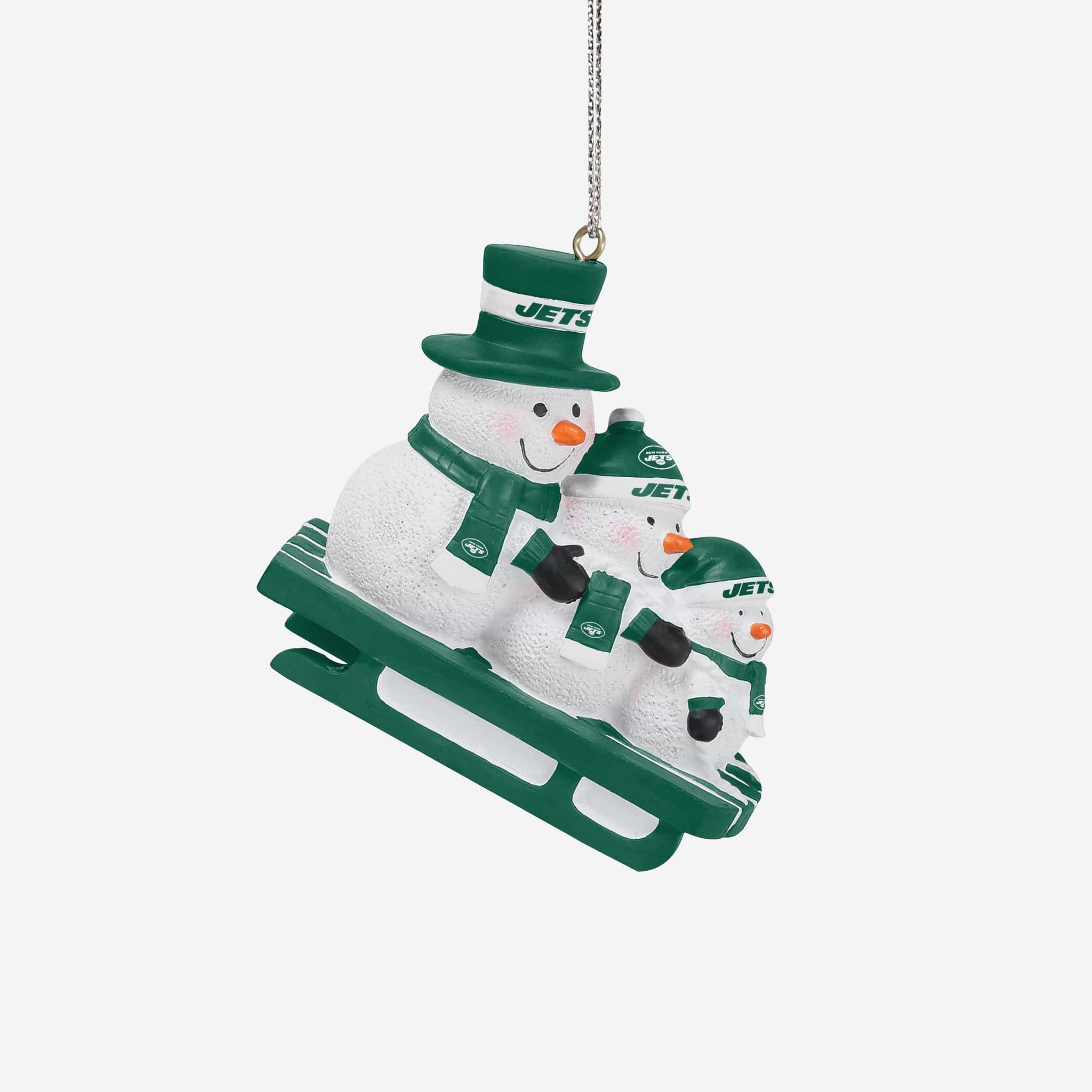 Meet three snowman friends that won't melt when you bring them inside! Introducing the New York Jets Sledding Snowmen Ornament!