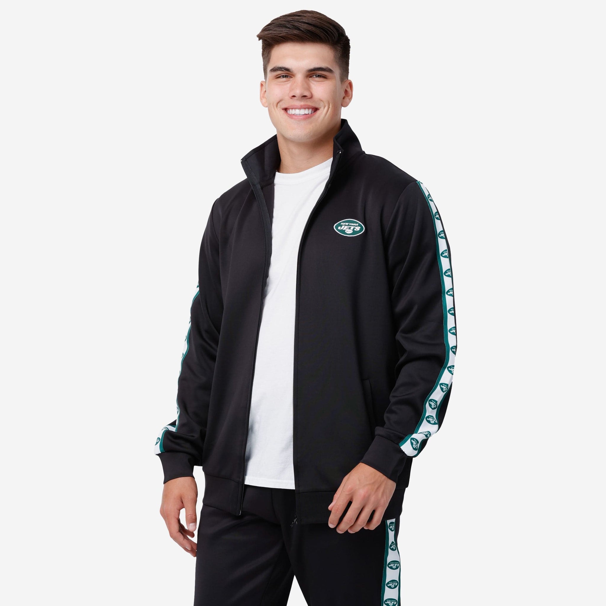 A jacket that you'll be jacked up to wear. Bundle up for your jog around the block with this New York Jets Stripe Logo Track Jacket.