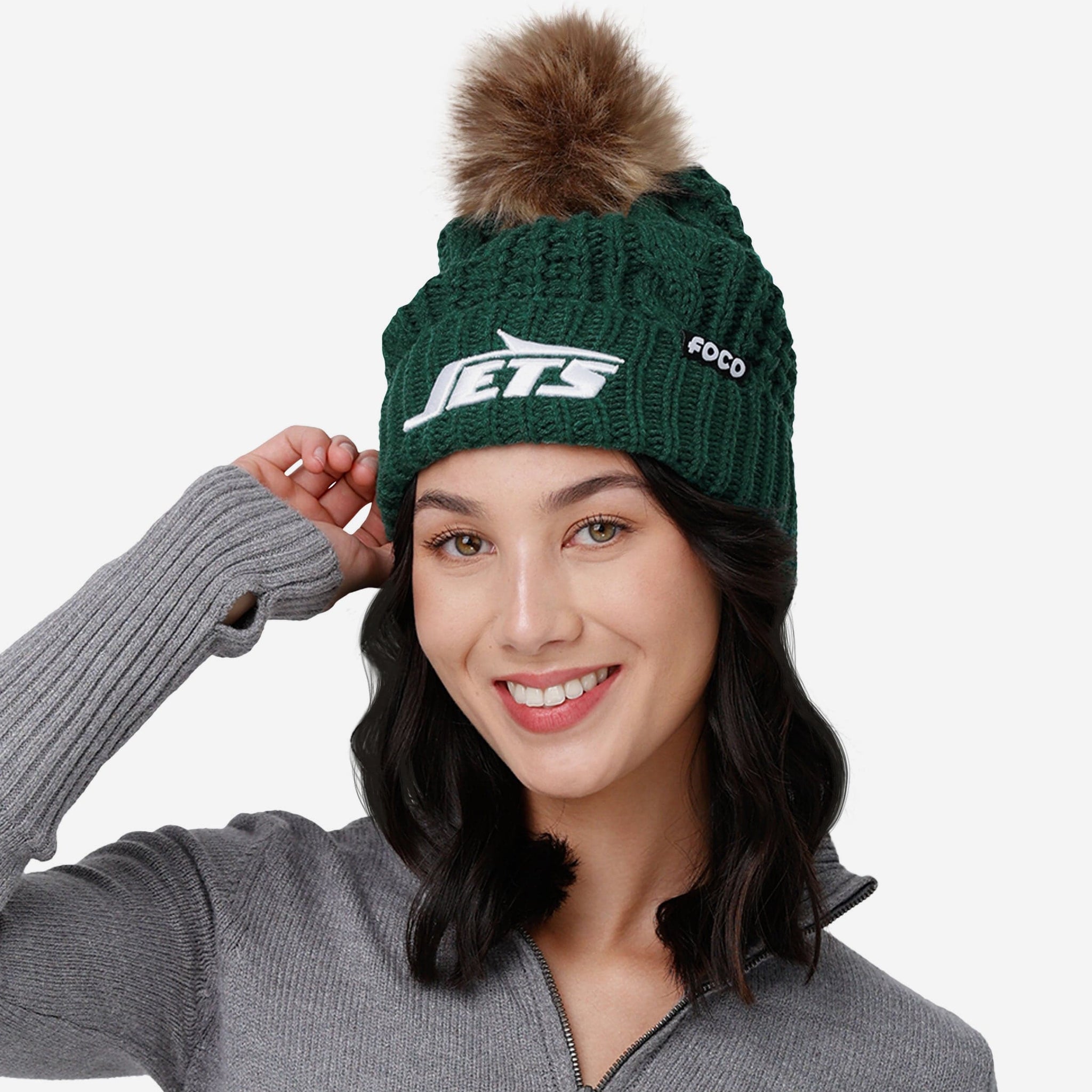 Putting together the ultimate fit for the tailgate and beyond? Make sure to get your head in the game with the New York Jets Women's Faux Fur Pom Beanie!