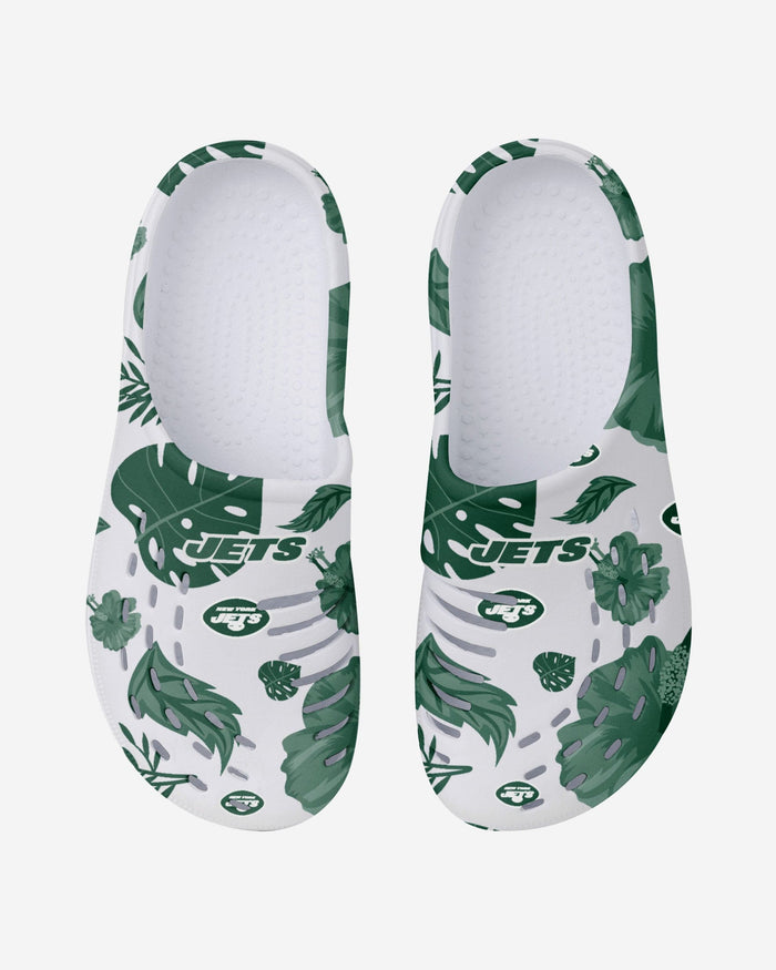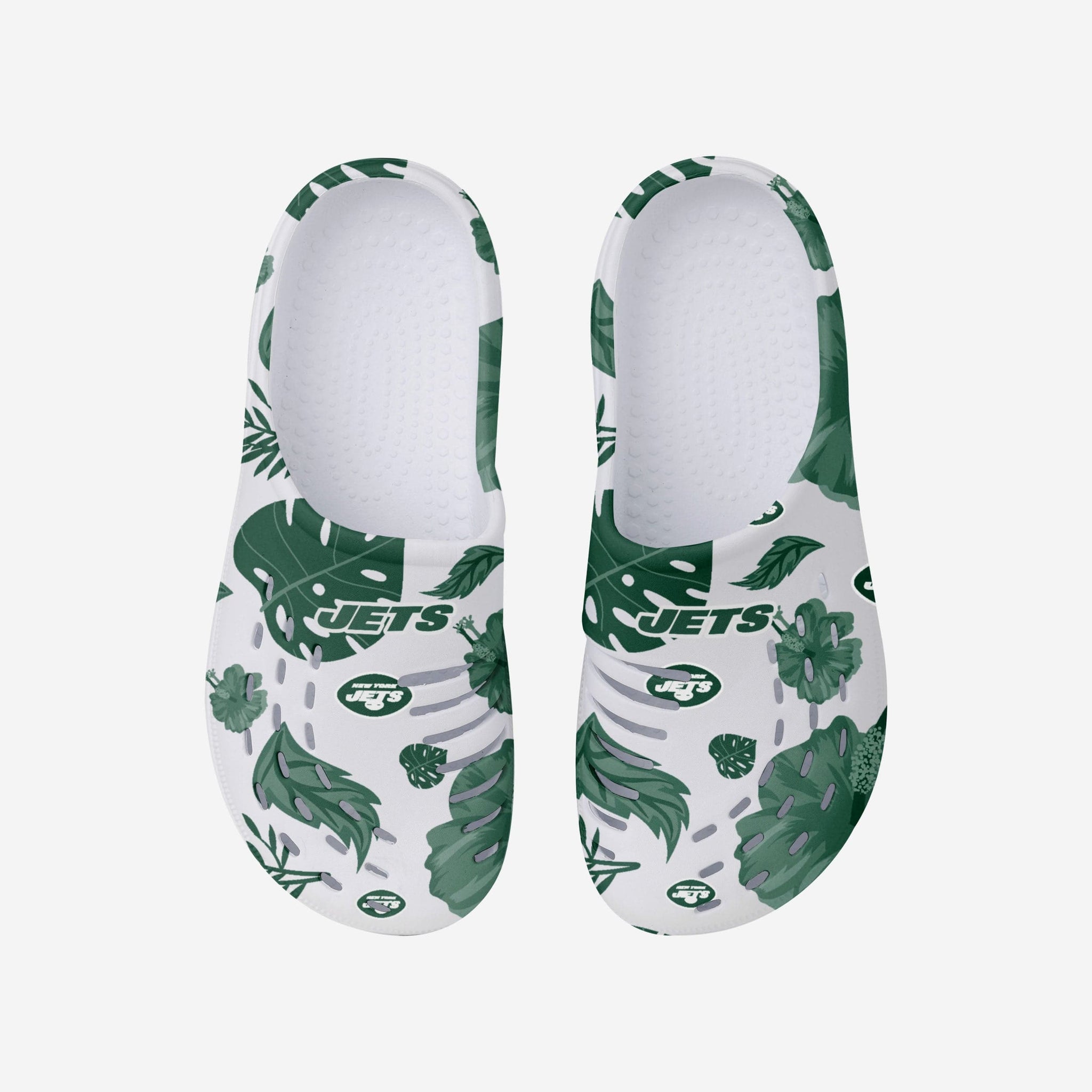 When you're packing for your next beach trip, make sure your team spirit isn't left at home. These New York Jets Women's Floral White Clogs have you covered!