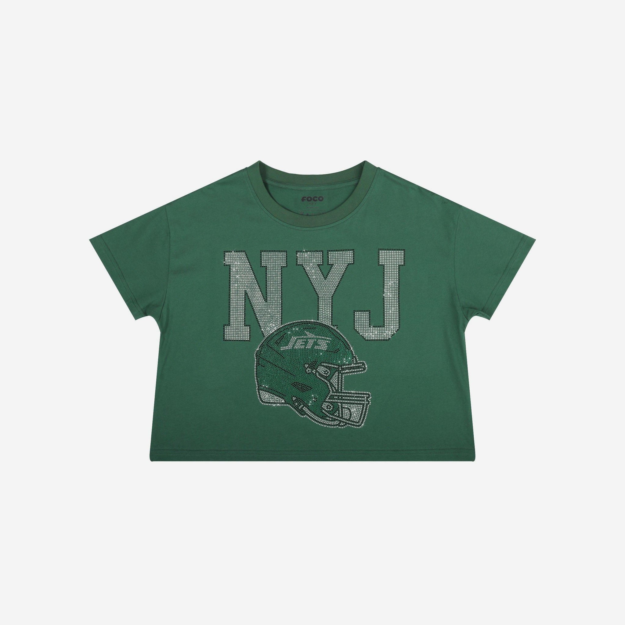 Victory looks good on you, and so will this New York Jets Womens Rhinestone Logo Crop Top. With its flattering cropped fit and dazzling team pride, this top is your go-to for standing out in the crowd and showing up for your squad in style.