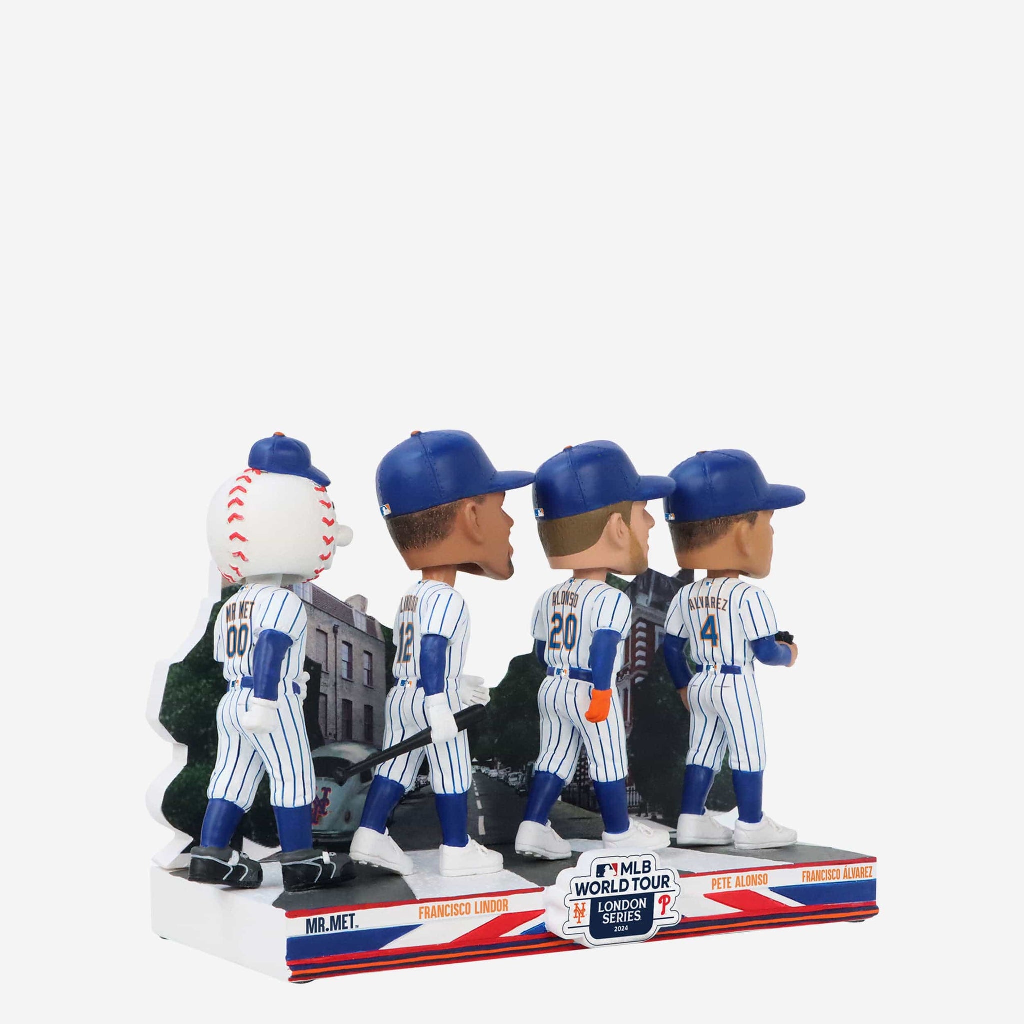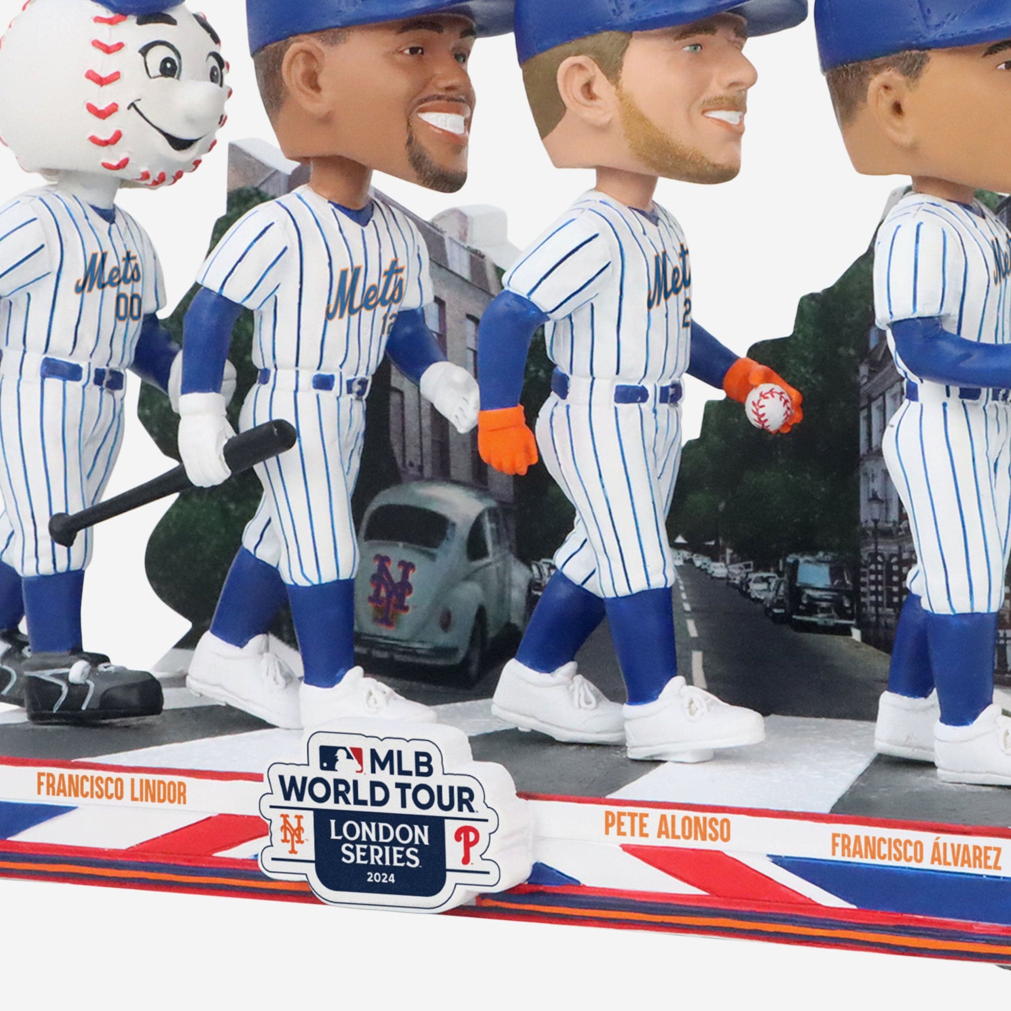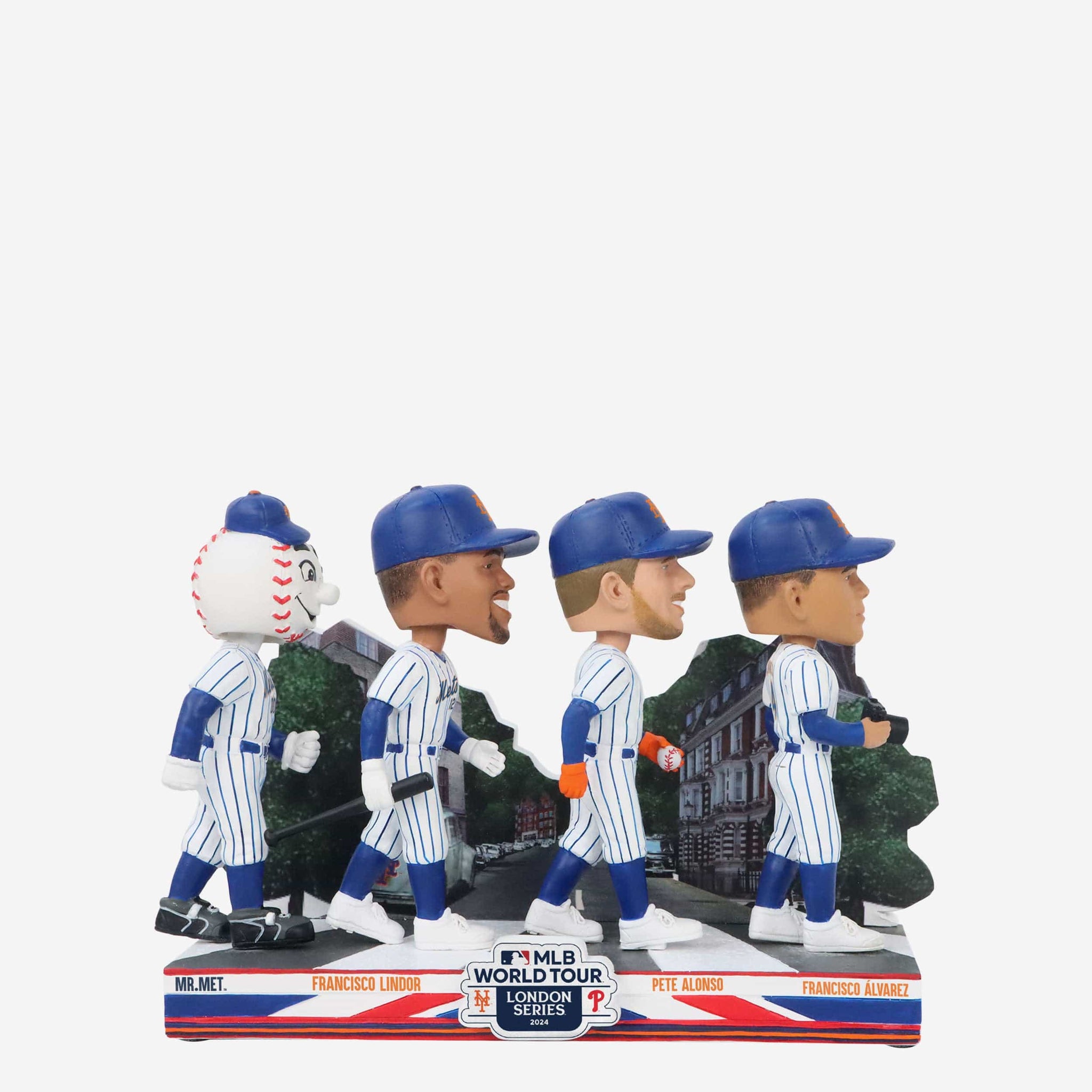 Talk about drawing a walk. Hit your stride with the New York Mets 2024 MLB London Series Abbey Road Mini Bobblehead Scene, featuring Mr. Met, Francisco Lindor, Pete Alonso, and Francisco Alvarez.