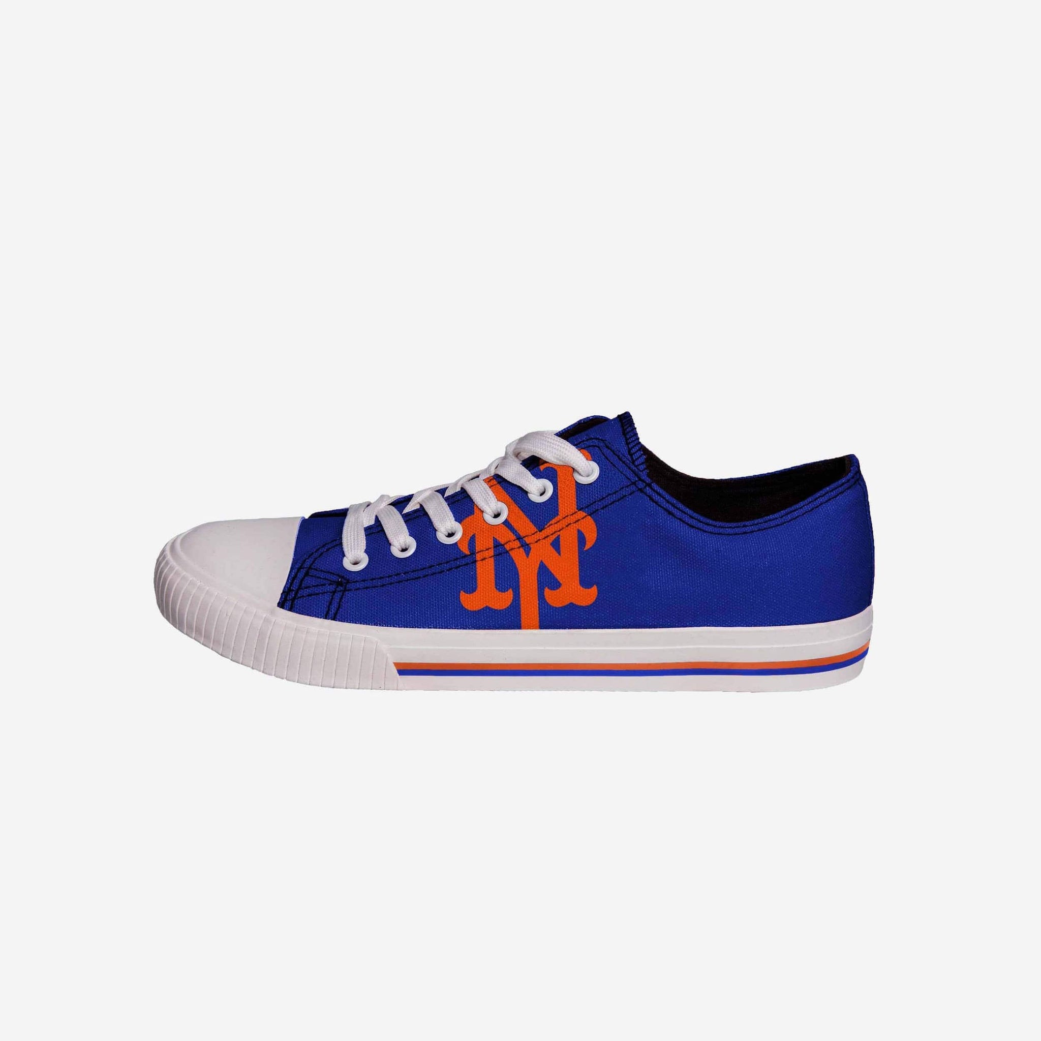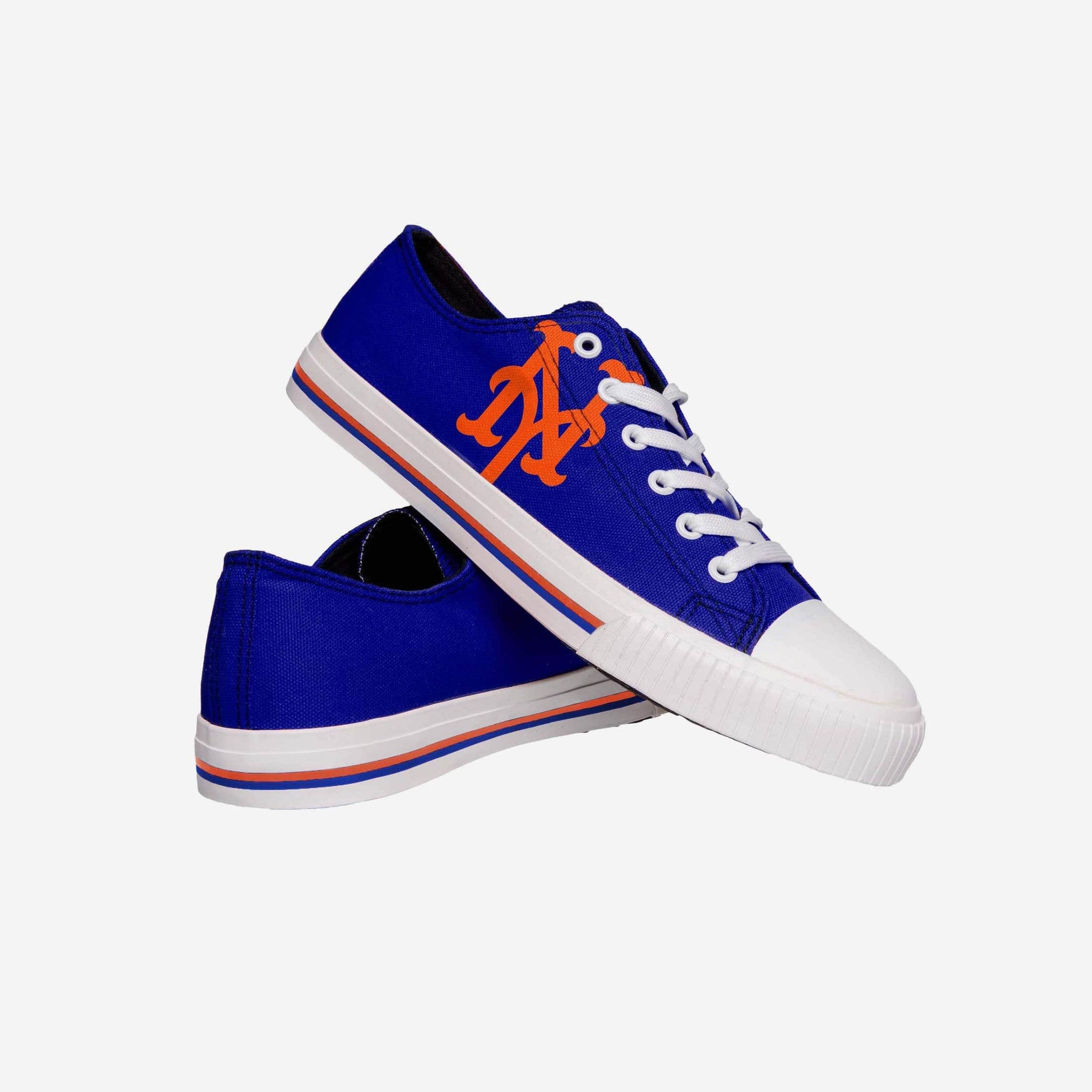 They always say to get your day started on the right foot. But if you're wearing these New York Mets Men's Low Top Big Logo Canvas Shoes, that could be tough. Because they'll look so good that it'll be tough to tell which one is the WRONG foot.