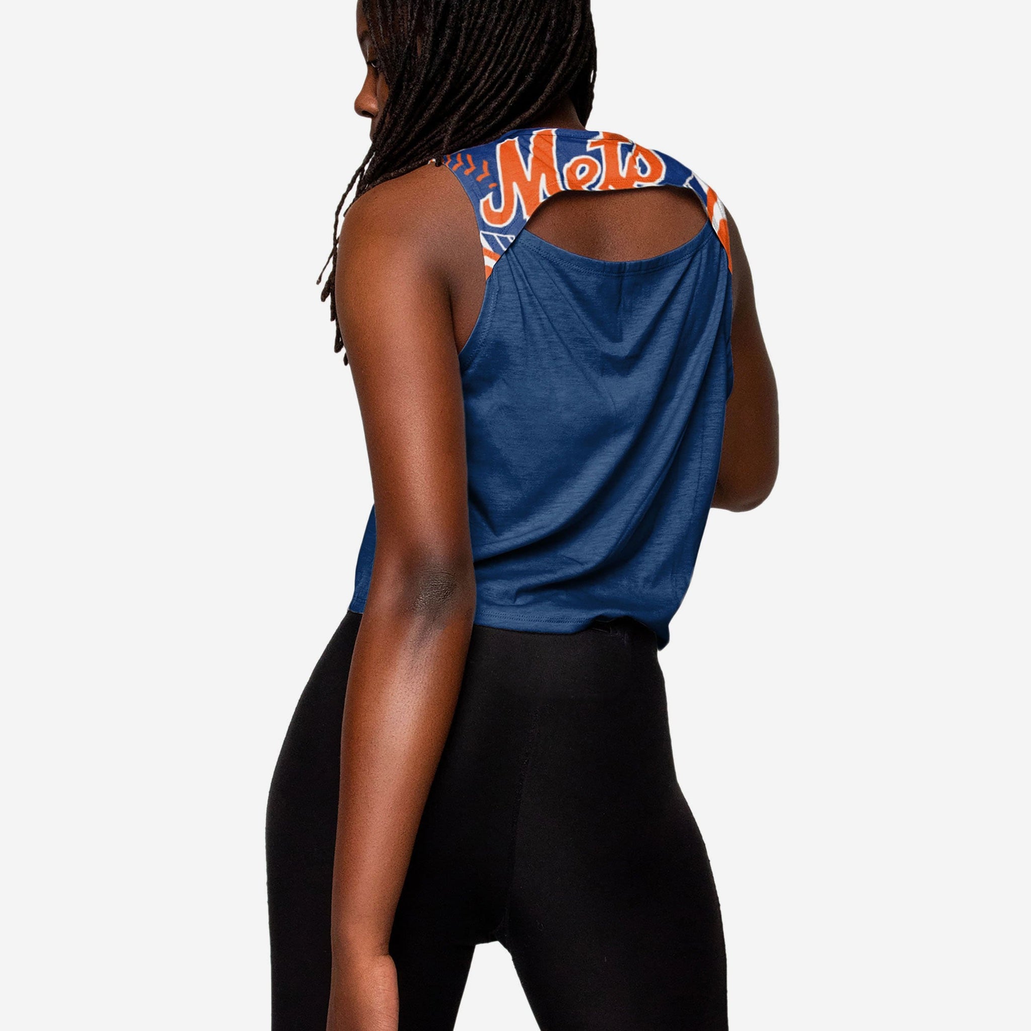 The style of a crop top and the comfort of a tank top, together in perfect harmony. Enjoy some top of the line fan fashion with the New York Mets Women's Croppin' It Sleeveless Top.