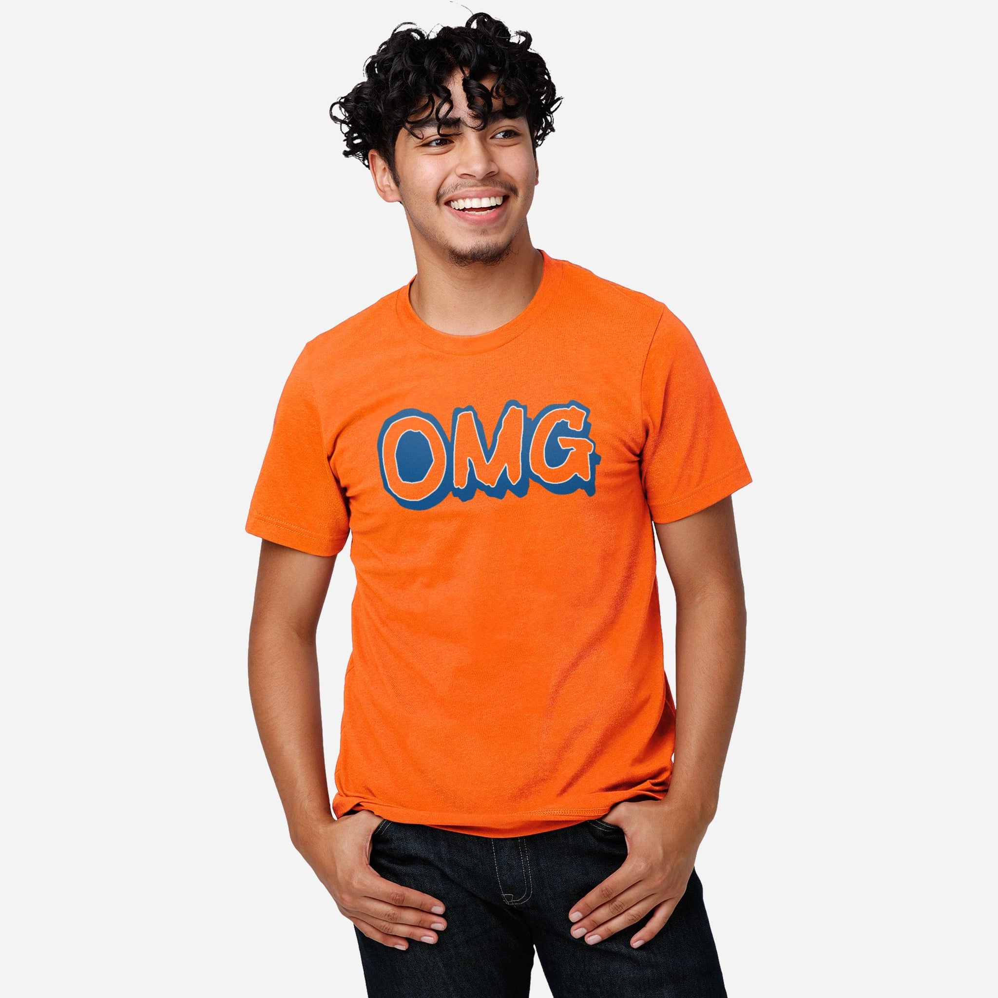 This top features a design that showcases your all-important team colors and a bold “OMG” text display across the chest, so you can gear up for a legendary postseason month