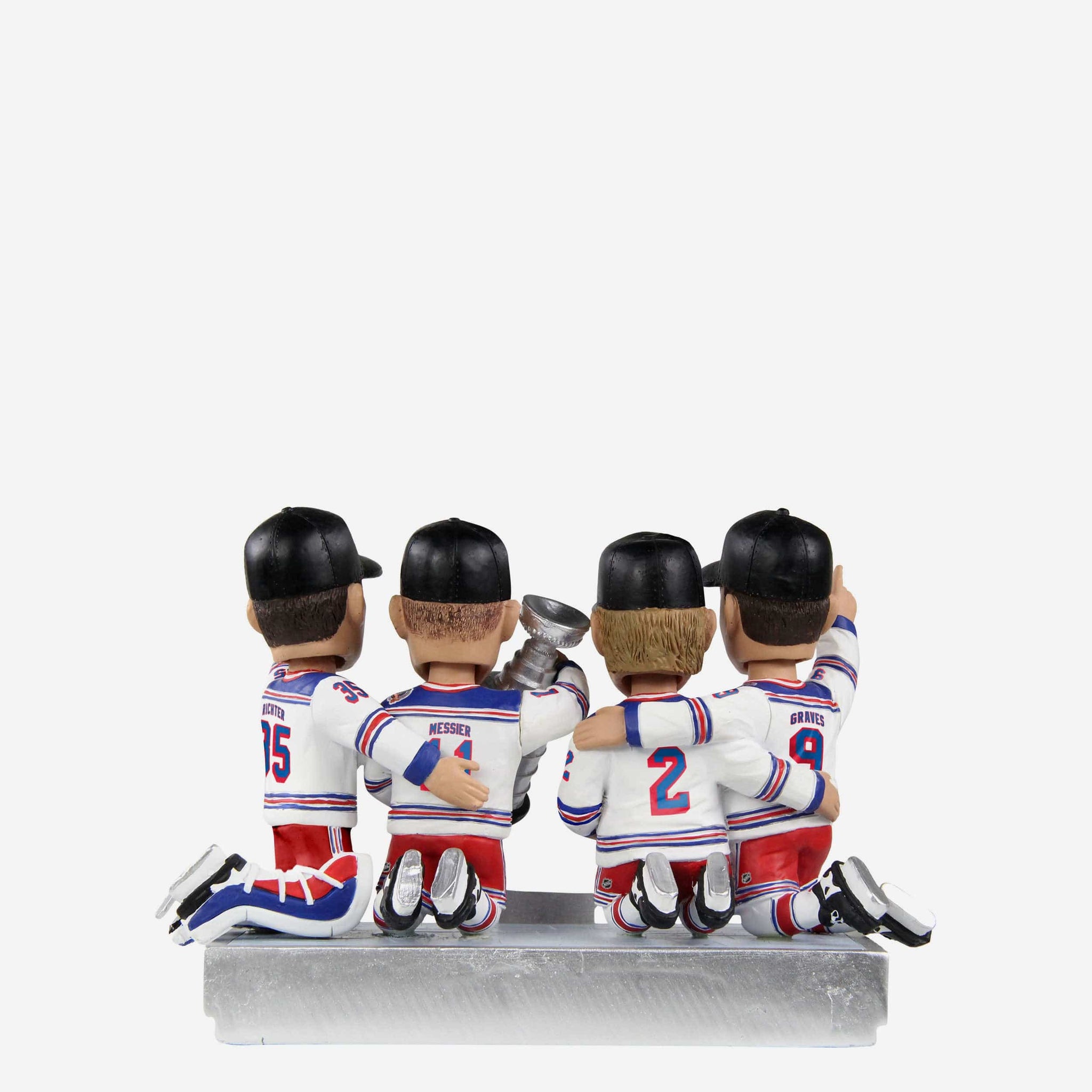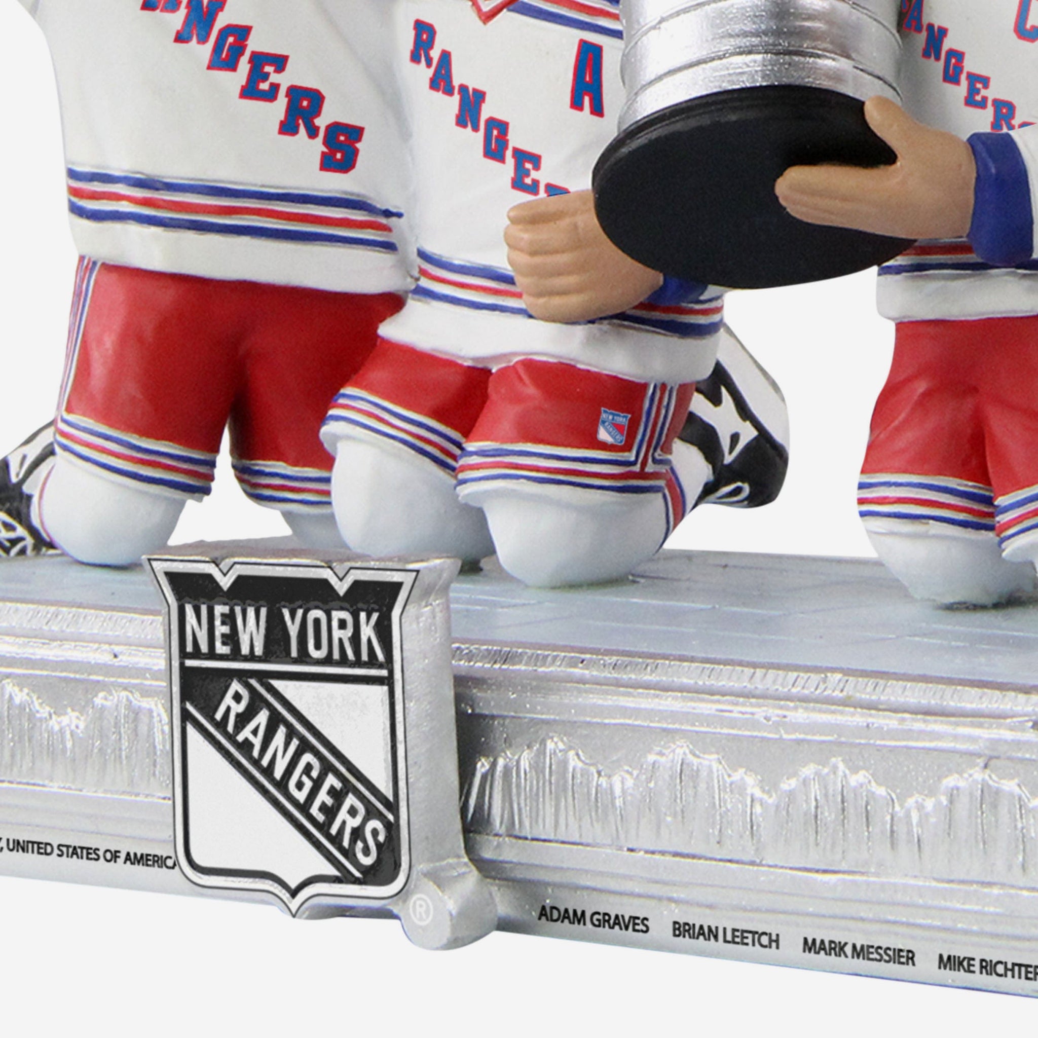 - Portrays Adam Graves, Brian Leetch, Mark Messier, and Mike Richter wearing their gameday uniforms and championship caps in a celebratory pose, ready to get the party started