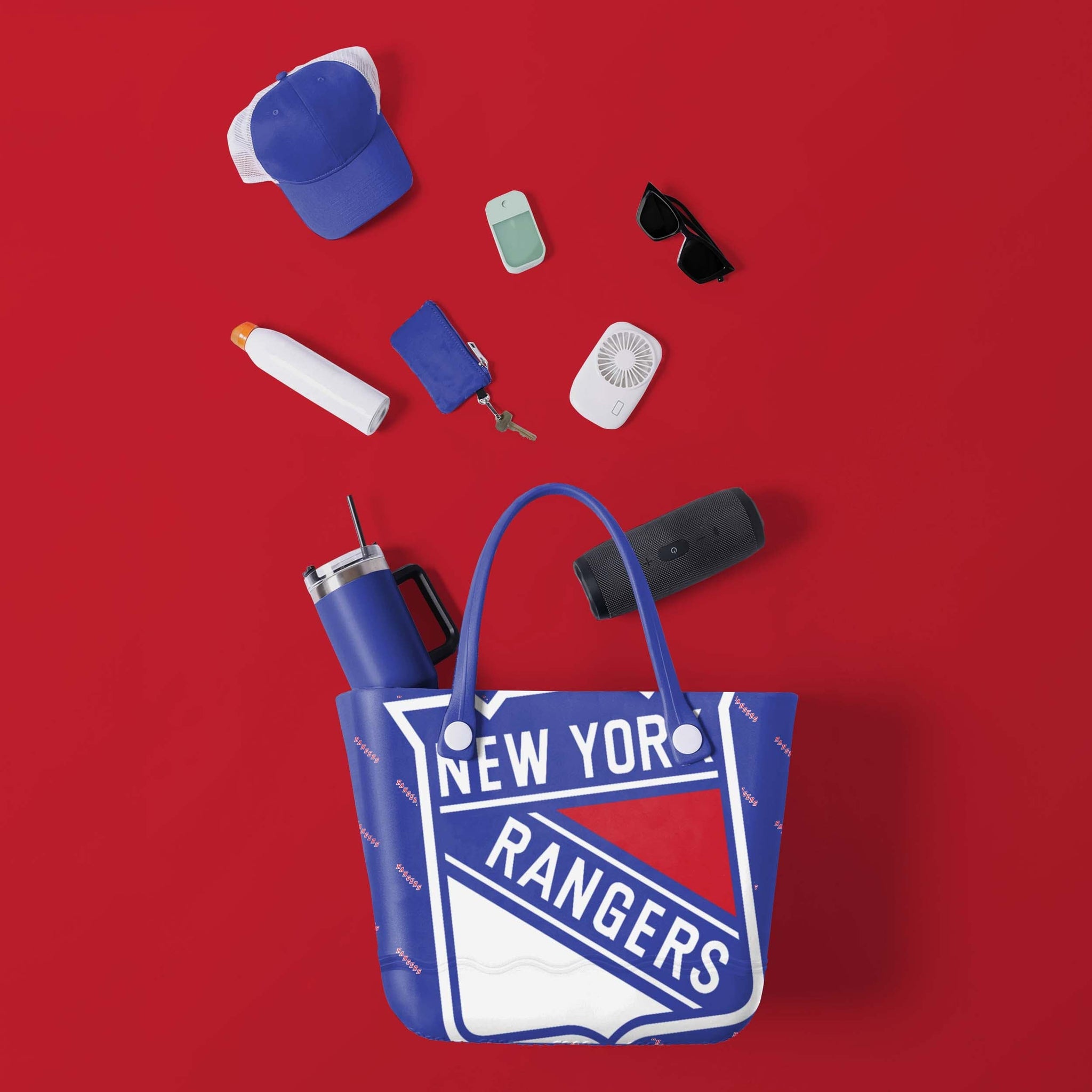 Looking for a bag as durable and dependable as your team spirit? You've found it. Whether you're running the tailgate, hitting the beach, or going on any adventure, pack up your fandom and take it on the go with this New York Rangers Big Logo Mini Print Tailgate Tote Bag.