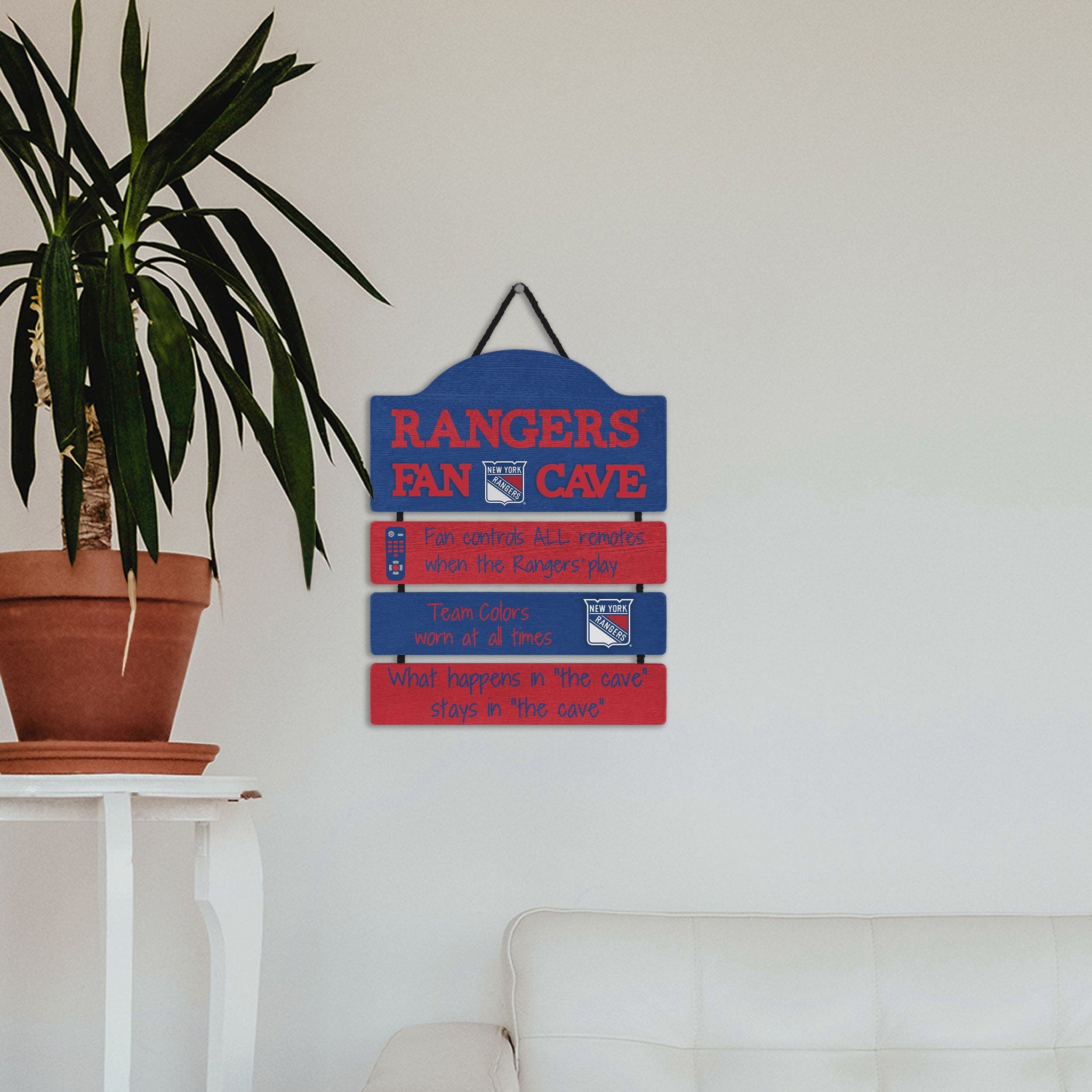 So, you're hosting the big watch party, and want to make sure you've decorated enough to impress your fellow fans. We've got you covered. This New York Rangers Mancave Sign lets everyone know who the fan in charge is, and gives your home field plenty of advantage.