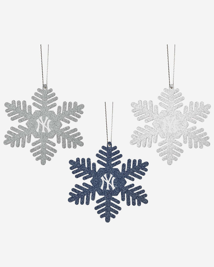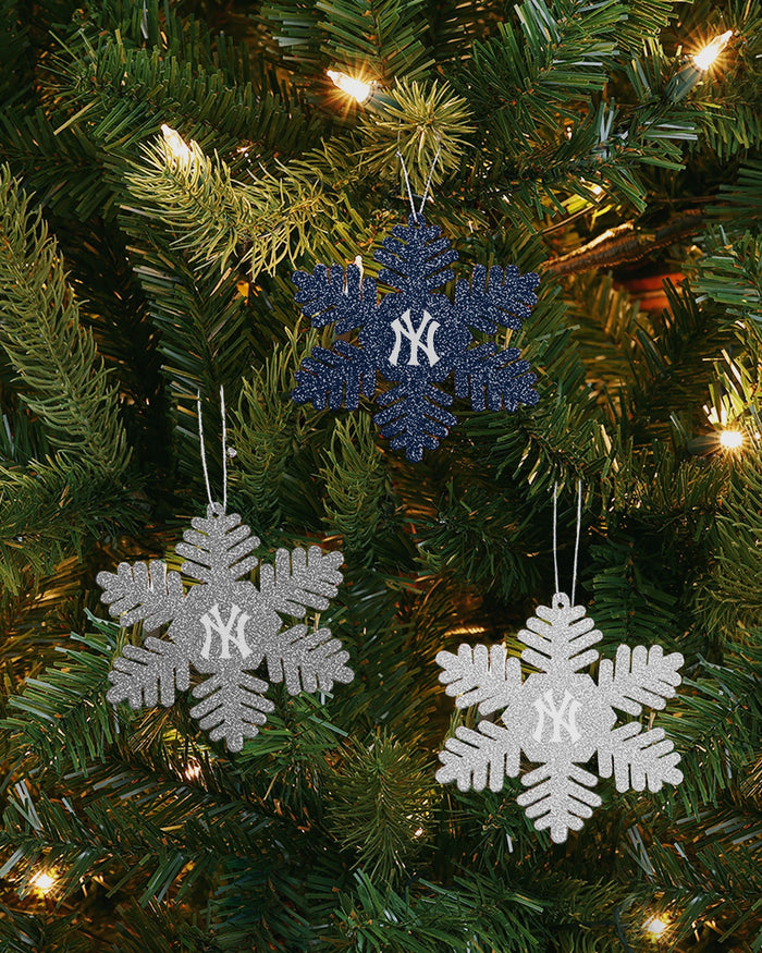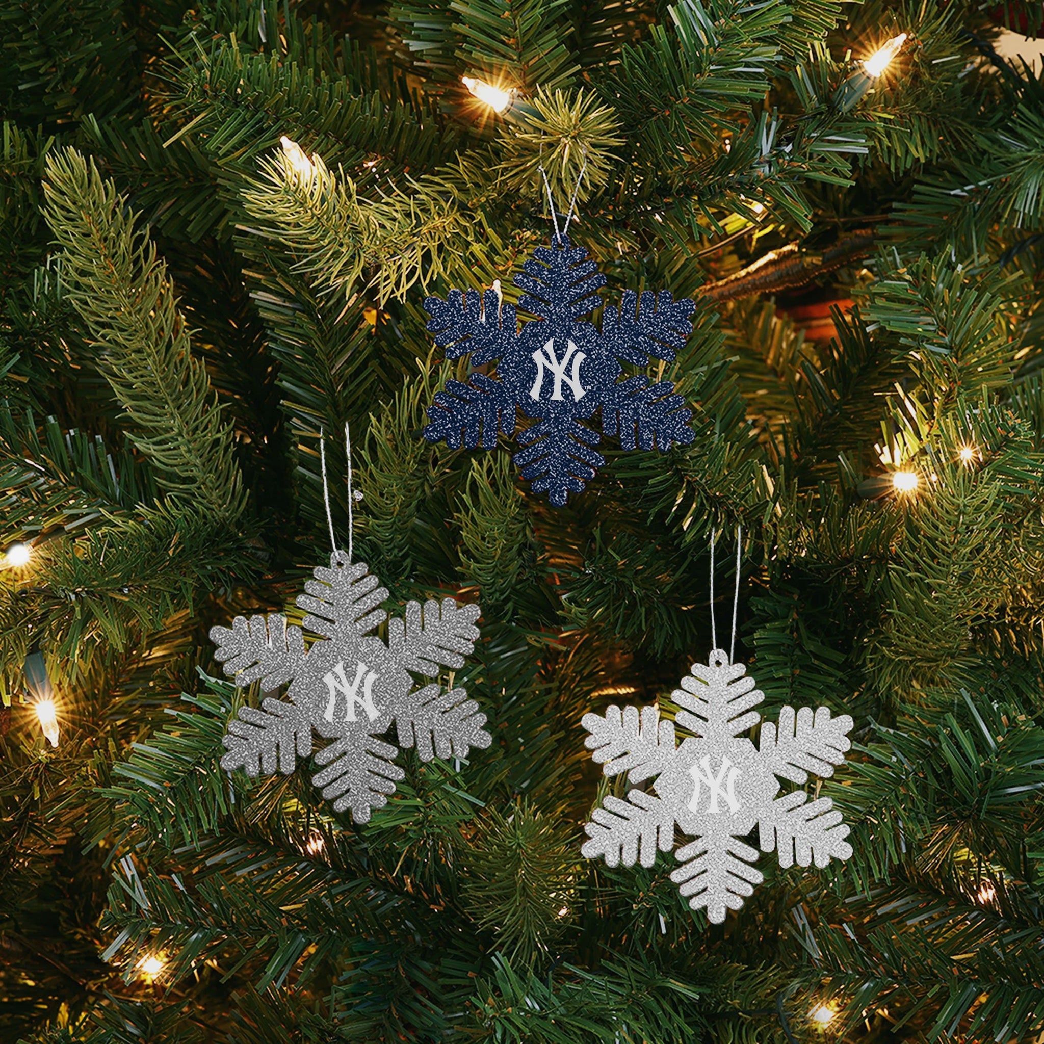 One half "Let it Snow", one half "Go Team Go!" This holiday season, let your team spirit AND holiday spirit shine by proudly displaying this New York Yankees 3 Pack Metal Glitter Snowflake Ornament!
