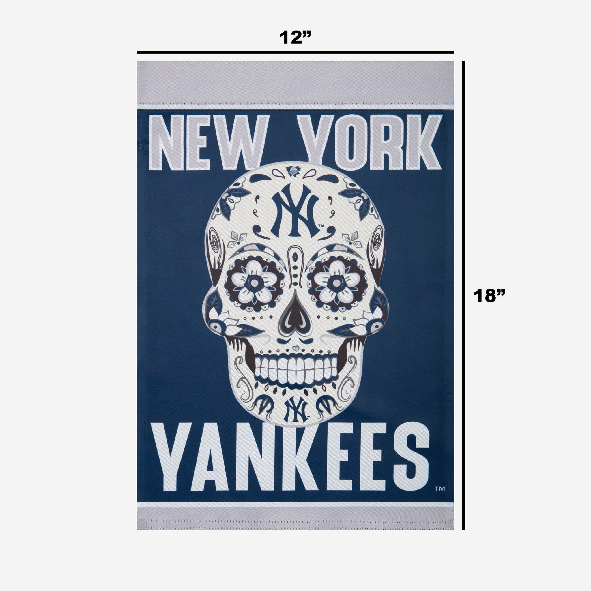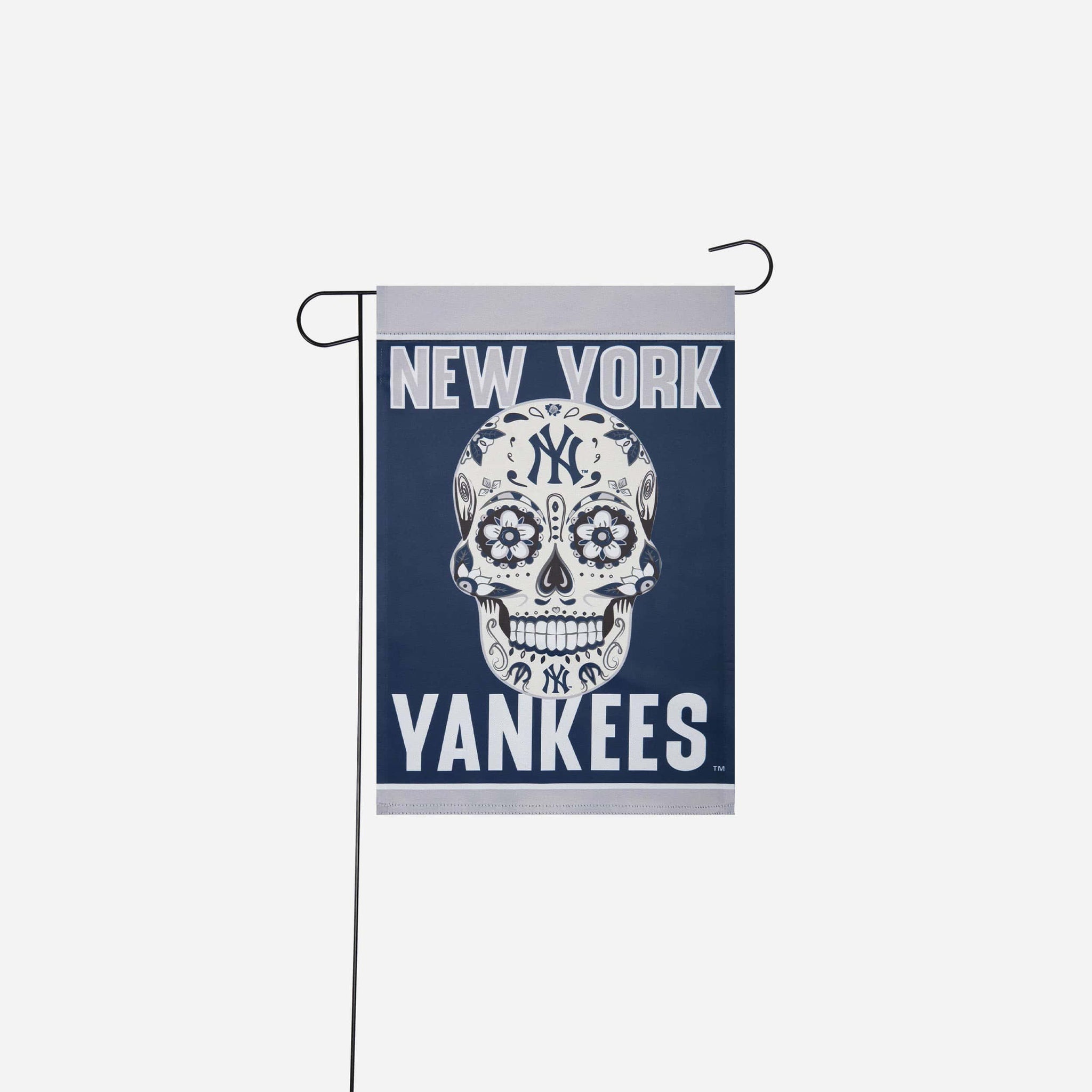 BOO! There are ghosts in the garden! Don't worry. Nothing to be afraid of here. It's just the New York Yankees Day of the Dead Garden Flag.