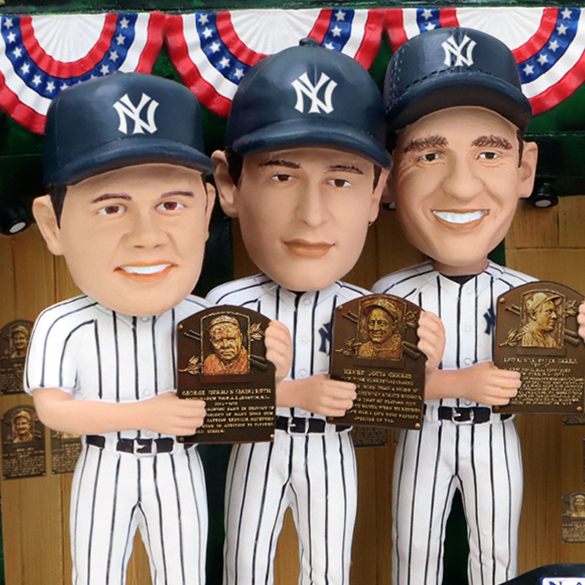 Legends live here. Celebrate the game’s greatest and bring a piece of Cooperstown to your collection with this New York Yankees Hall Of Fame Mini Bobblehead Scene.