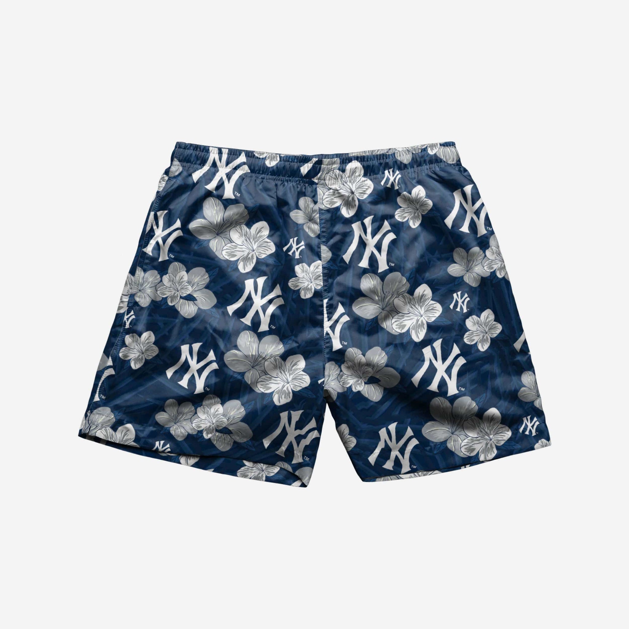 Rock your fandom and say "aloha" to the pool, ocean, lake, hot tub, or whatever body of water you're getting into while you wear these New York Yankees Hibiscus Swimming Trunks.