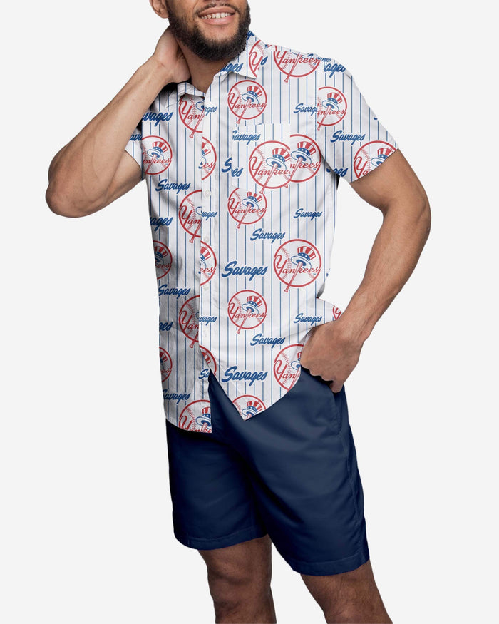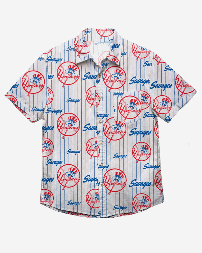 Your fashion sense is about to become, in a word, savage. Wear your pinstripe pride, cheer on the Bronx Bombers, and let everyone know that you're a bleepin' savage in the box with this New York Yankees Savages Button Up Shirt.