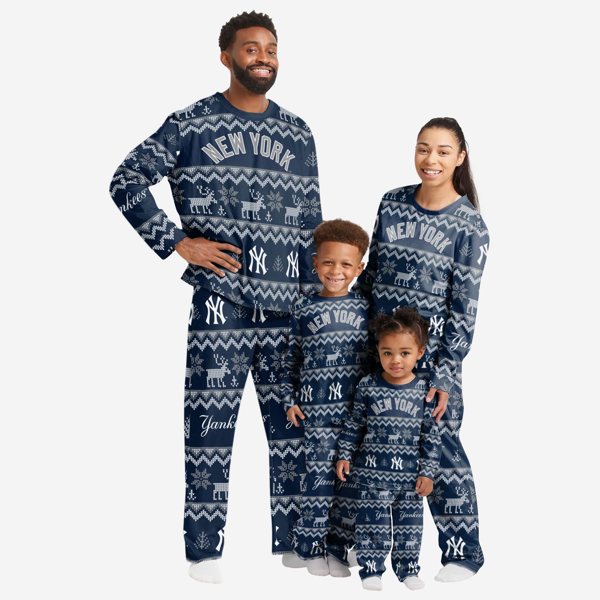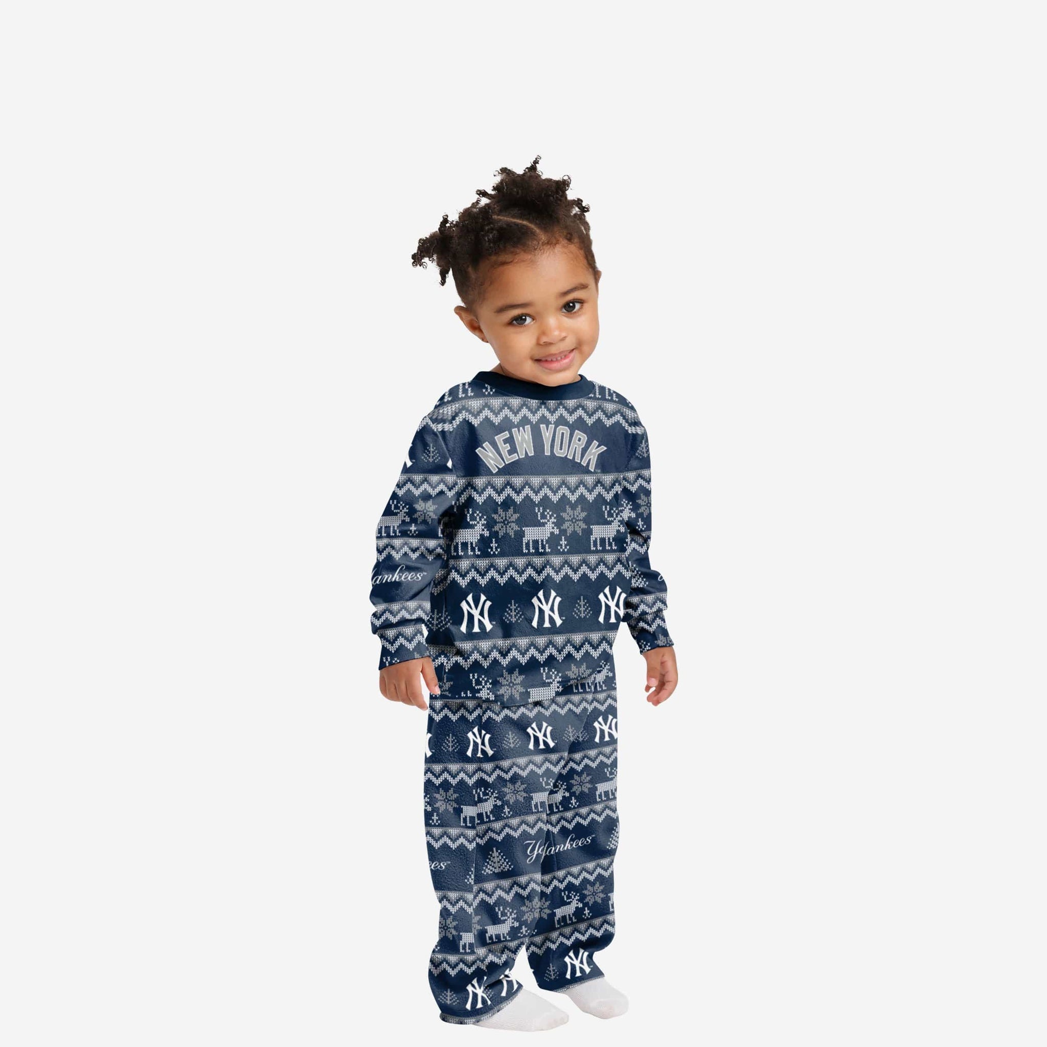 Get some matching family pajamas and dress to impress this holiday season! You won't want to miss these kids' team pajamas! These youth PJ's are comfortable and show off your team spirit in the form of some sweet youth jammies. Introducing the New York Yankees Toddler Ugly Pattern Family Holiday Pajamas! Don't forget to take your holiday photo with the whole family wearing matching Christmas pajamas!