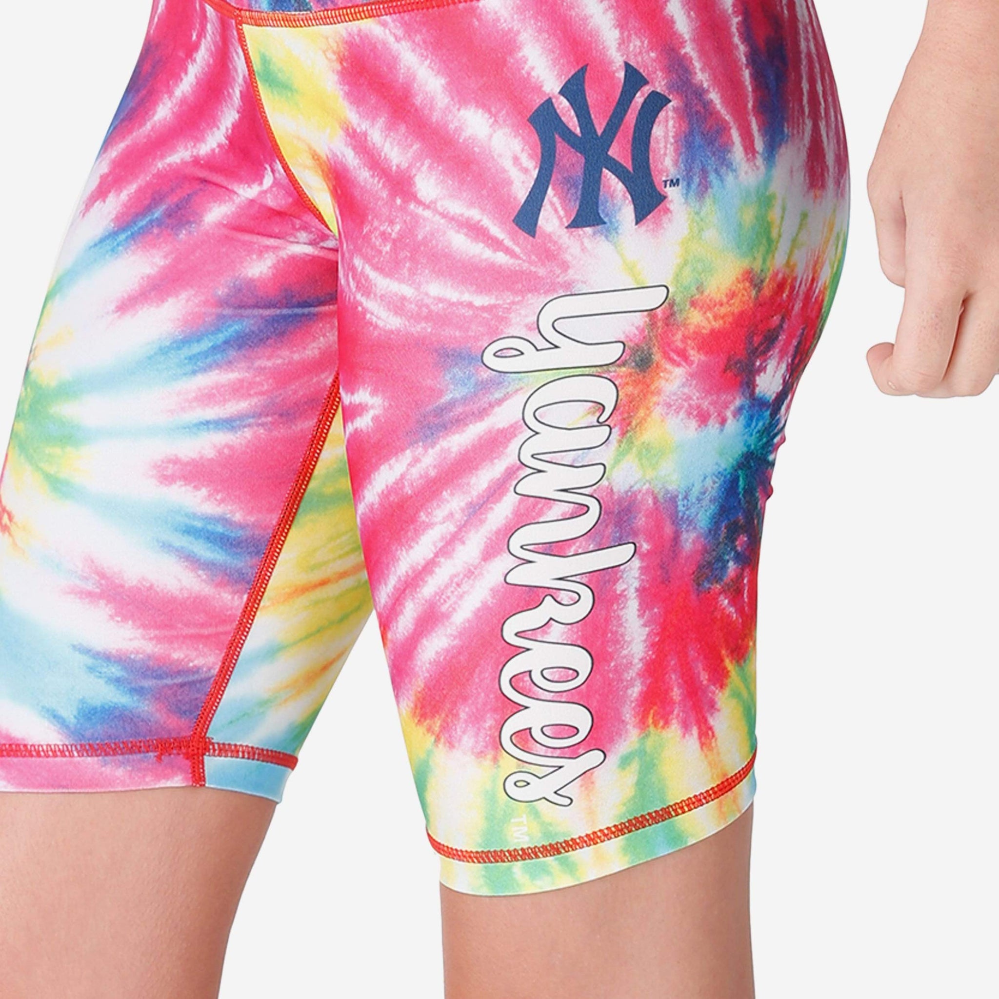 It's tie dye time! Work out your team spirit in these New York Yankees Women's Tie-Dye Bike Shorts!