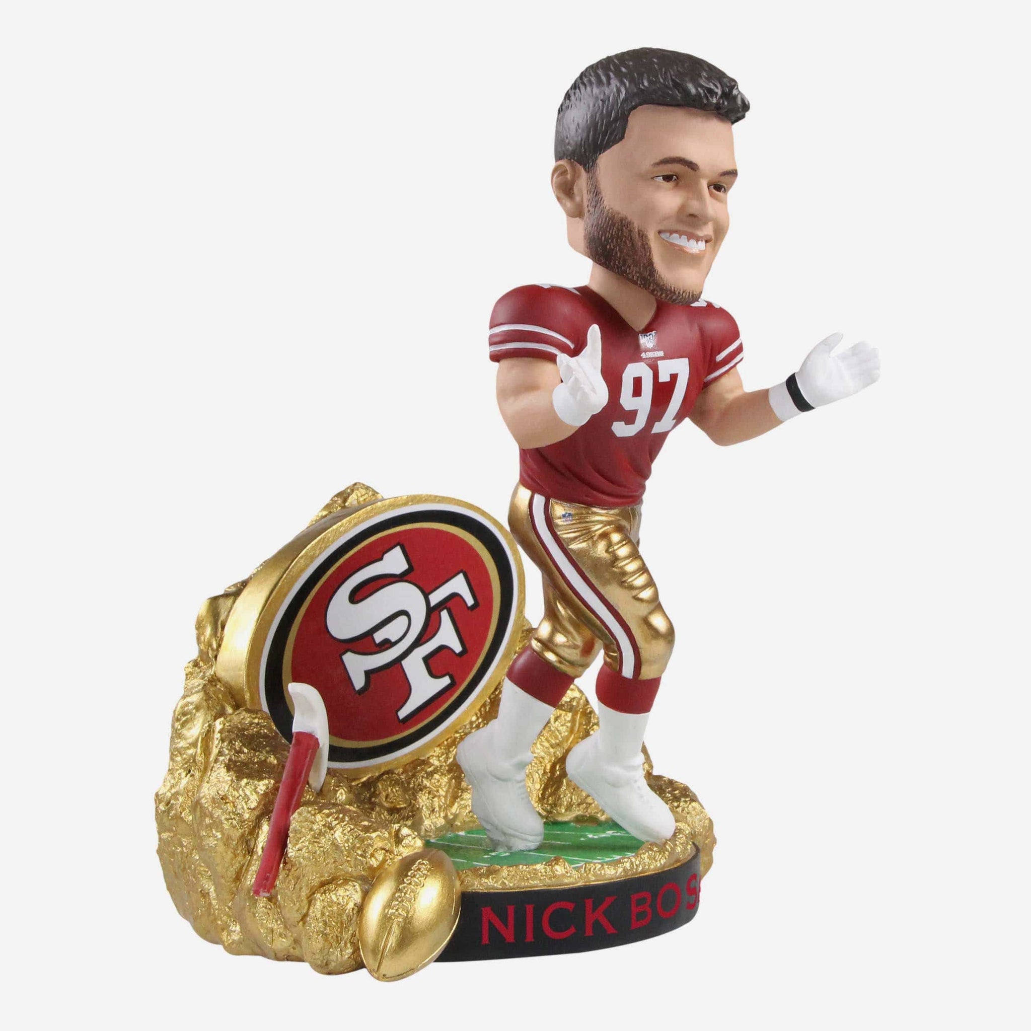 In the mid-1800s, thousands of prospectors made their way to California to work tirelessly to find gold, spending hours, days, and weeks, panning in rivers to find any bit of gold. All you have to do to get some gold is add this Nick Bosa San Francisco 49ers Gold Rush Bobblehead to your collection. Way easier.