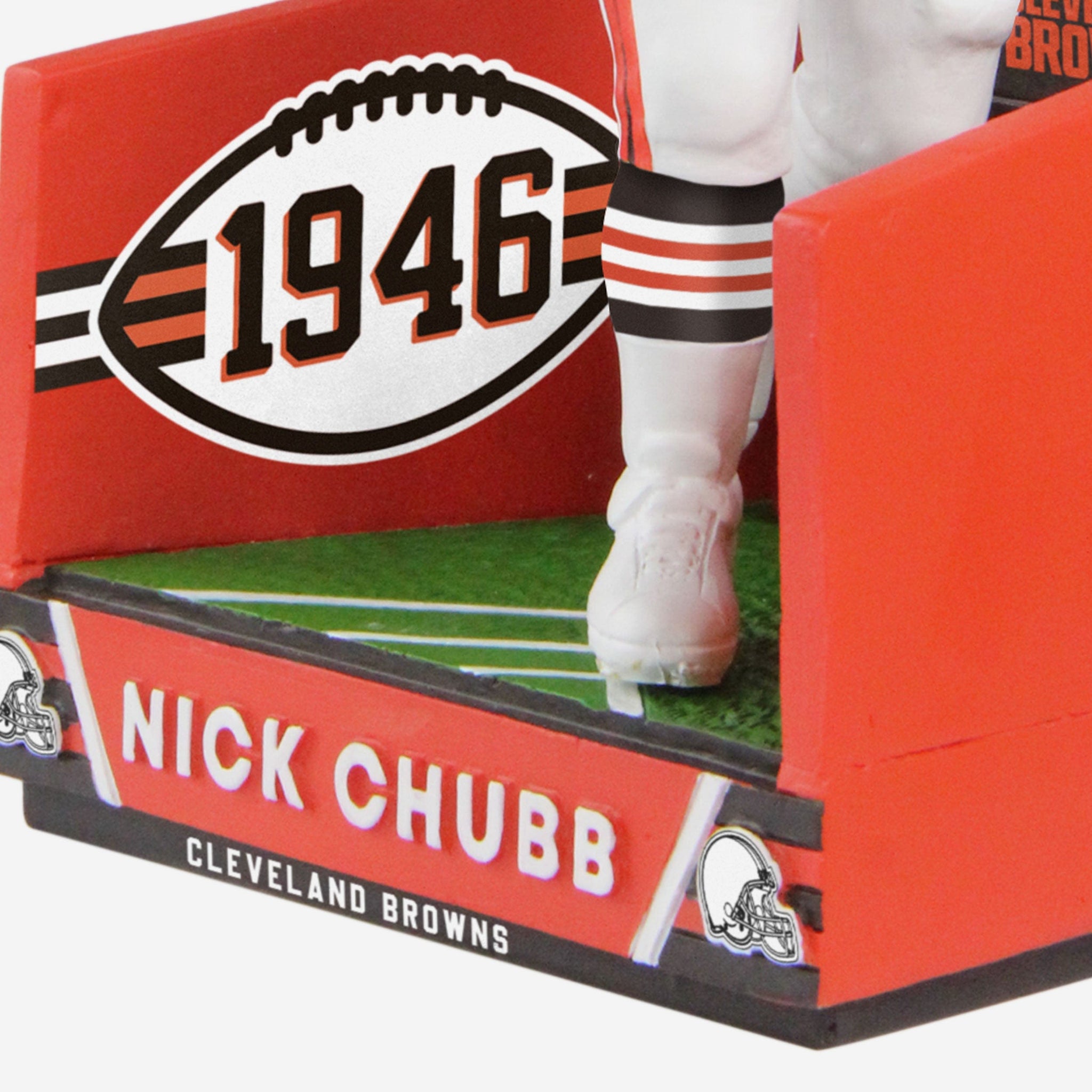 Nick Chubb is charging out of the tunnel, past the Dawg Pound, and into your collection with this Nick Chubb Cleveland Browns Pregame Tunnel Entrance Bobblehead.