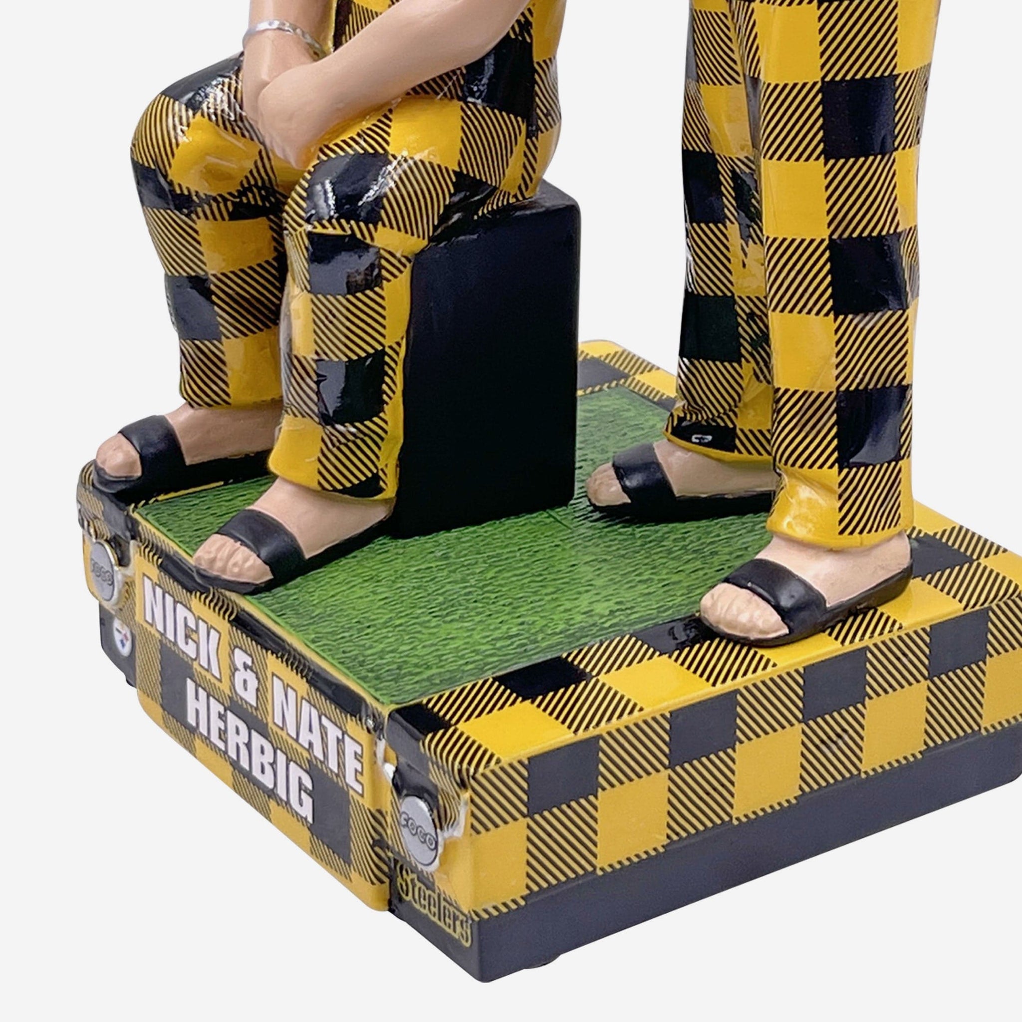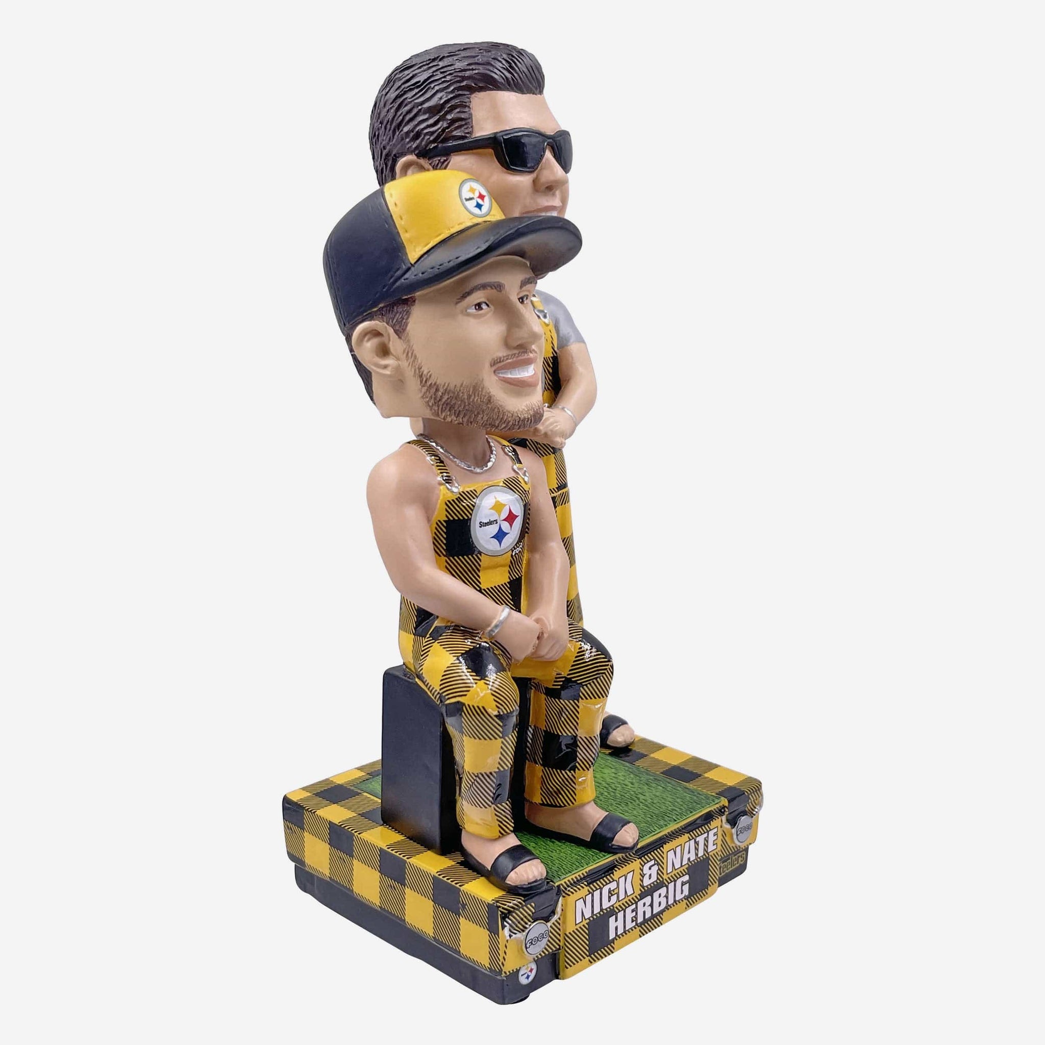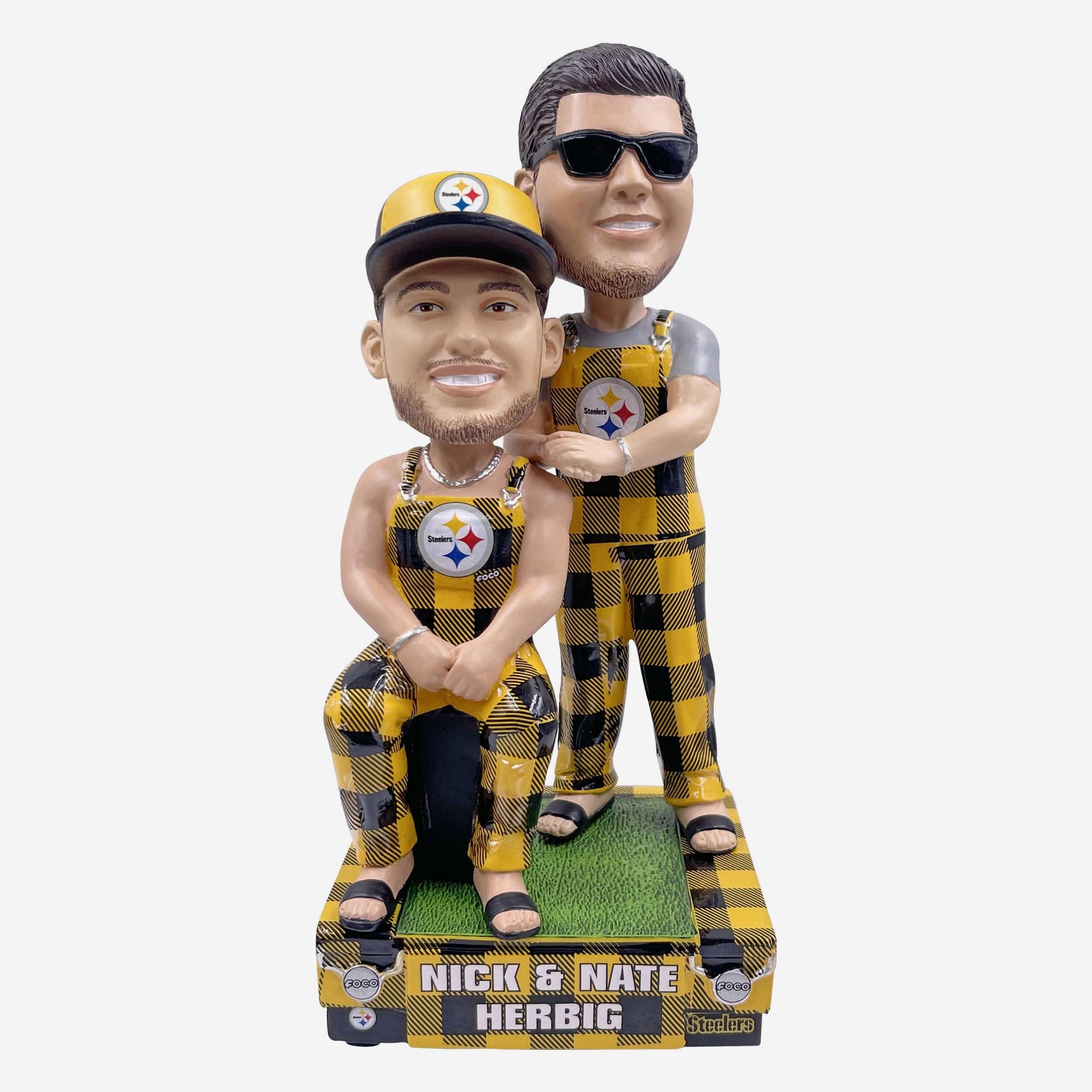 No, you're not seeing double. That's just two well-dressed brothers bringing some Steel City style to your huddle with the Nick Herbig & Nate Herbig Pittsburgh Steelers Bib Overalls Dual Bobblehead.