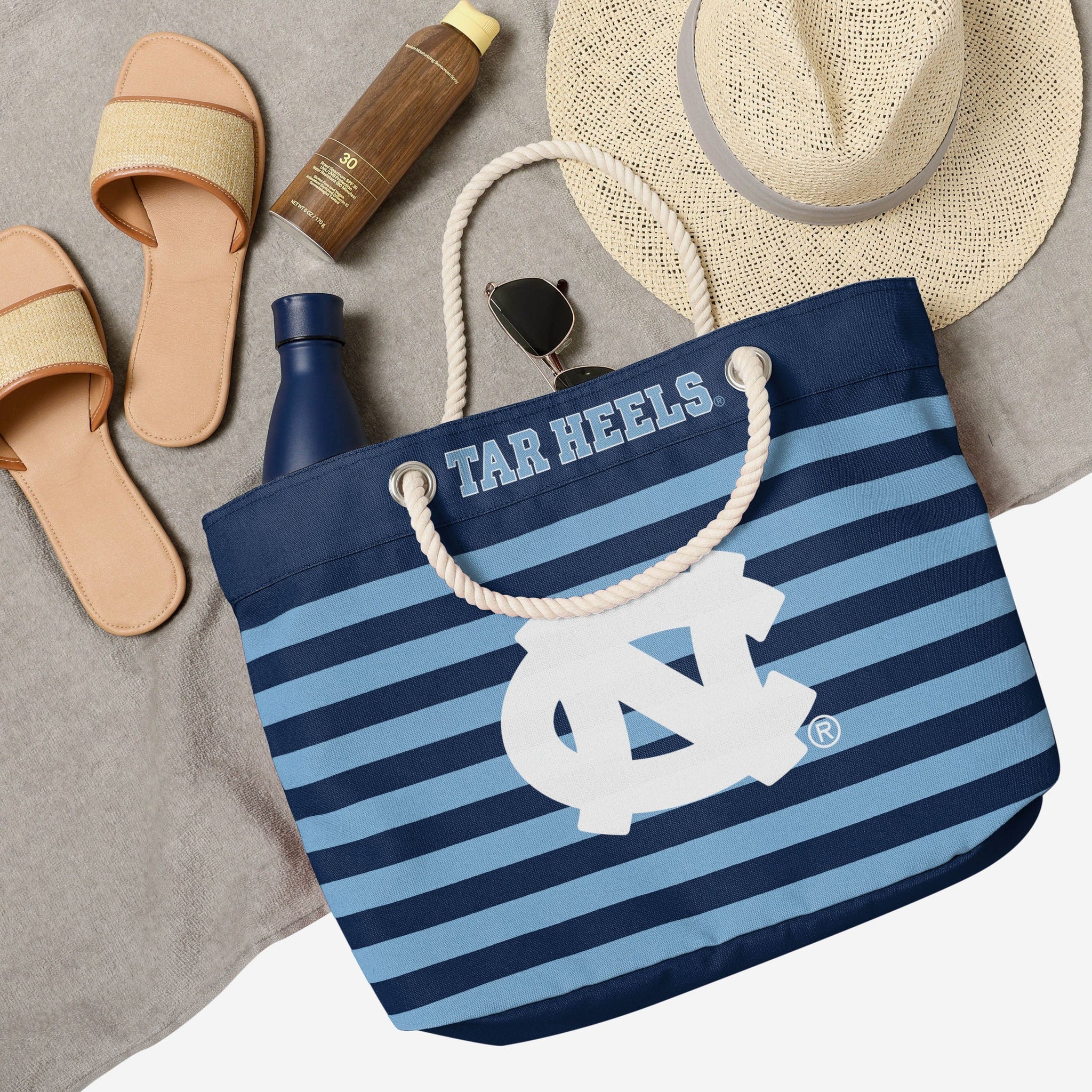 You're a real fan. You've earned your stripes. Now you can show them off AND carry the team with this North Carolina Tar Heels Nautical Stripe Tote.