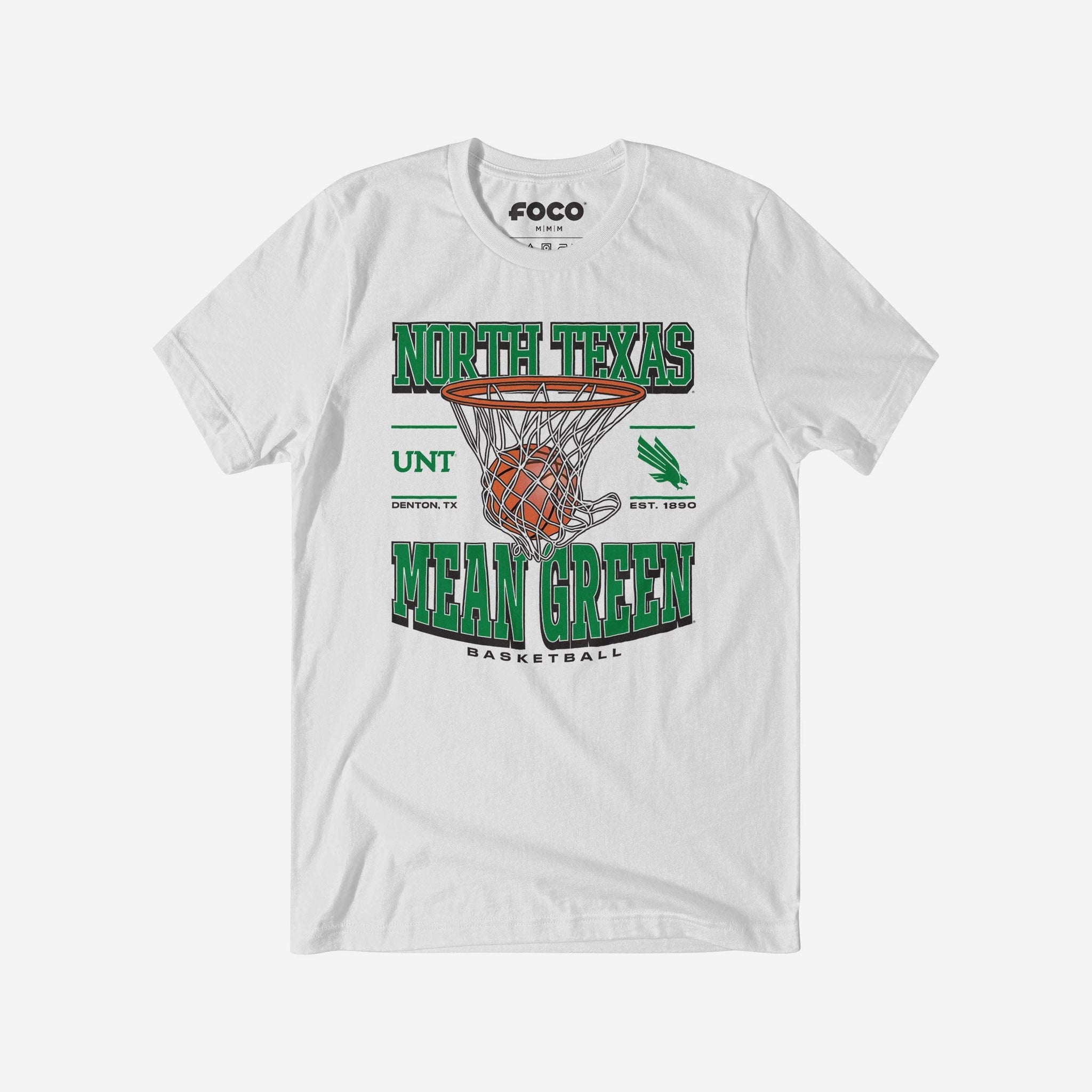 This top features a design that showcases your all-important team colors, a team logo display, a team wordmark name display, year of team establishment, and a basketball swishing through a net display meaning this t-shirt will prove your unmatched dedication to the North Texas Mean Green when you're at the game or watching at home. In other words, this graphic tee is about to be your new favorite teammate.