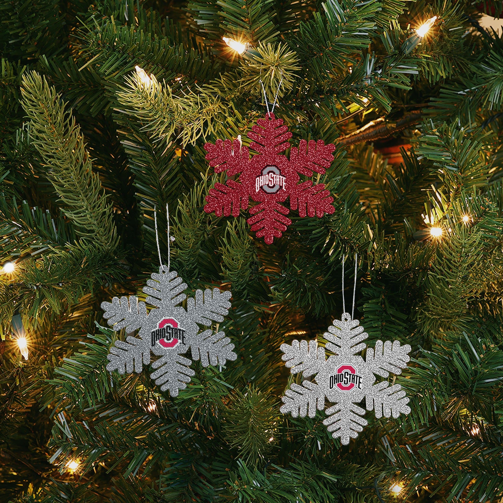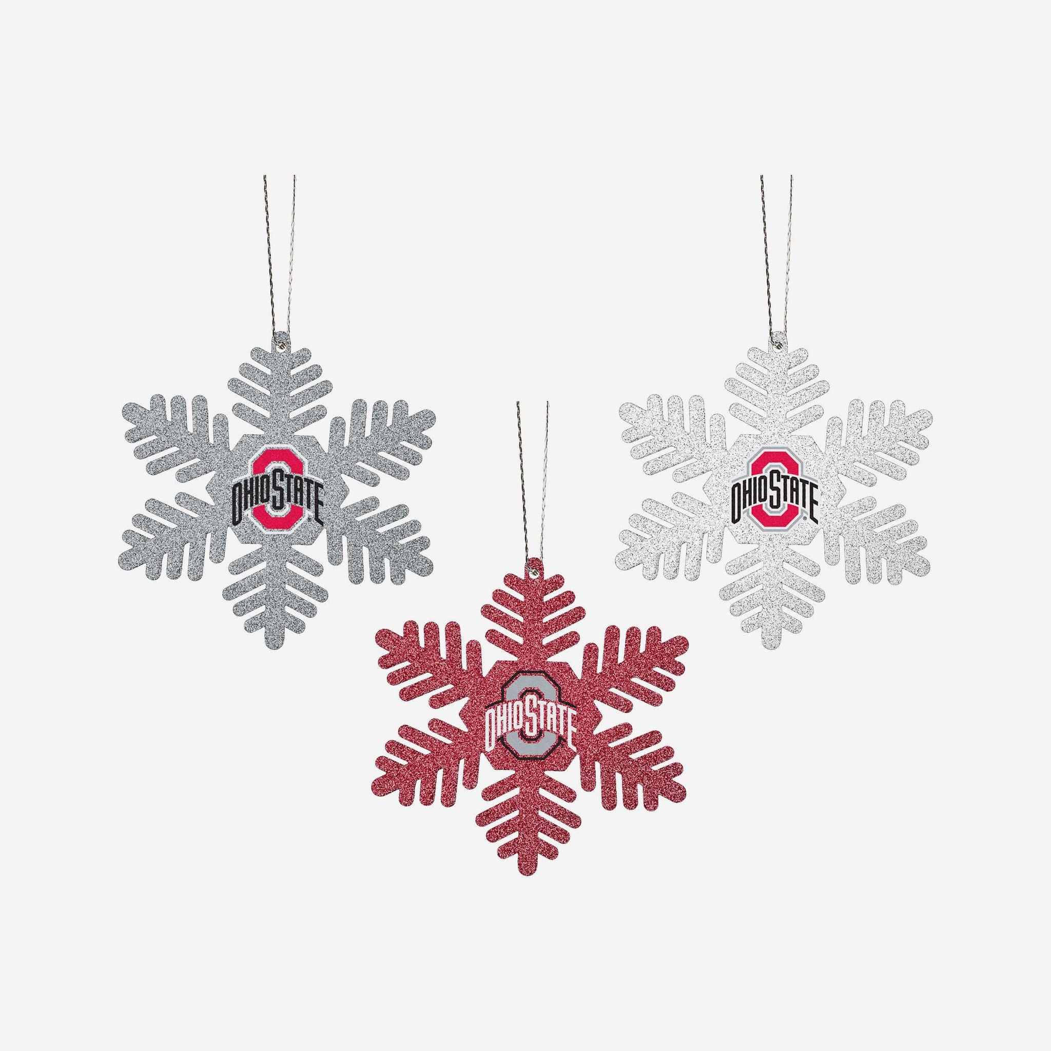 One half "Let it Snow", one half "Go Team Go!" This holiday season, let your team spirit AND holiday spirit shine by proudly displaying this Ohio State Buckeyes 3 Pack Metal Glitter Snowflake Ornament!